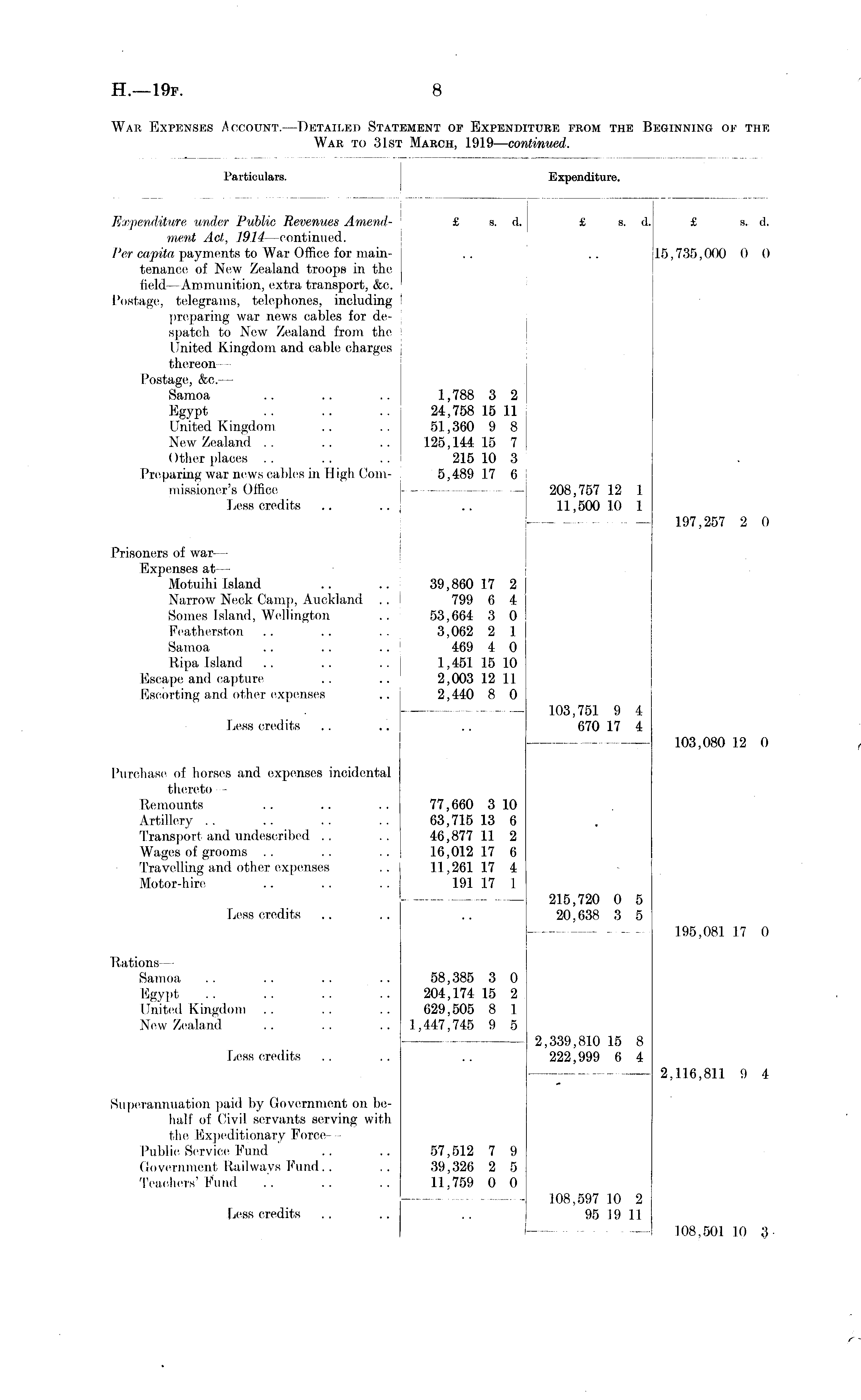 War Expenses Account. —Detailed Statement of Expenditure from the Beginning of the War to 31st March, 1919 — continued.