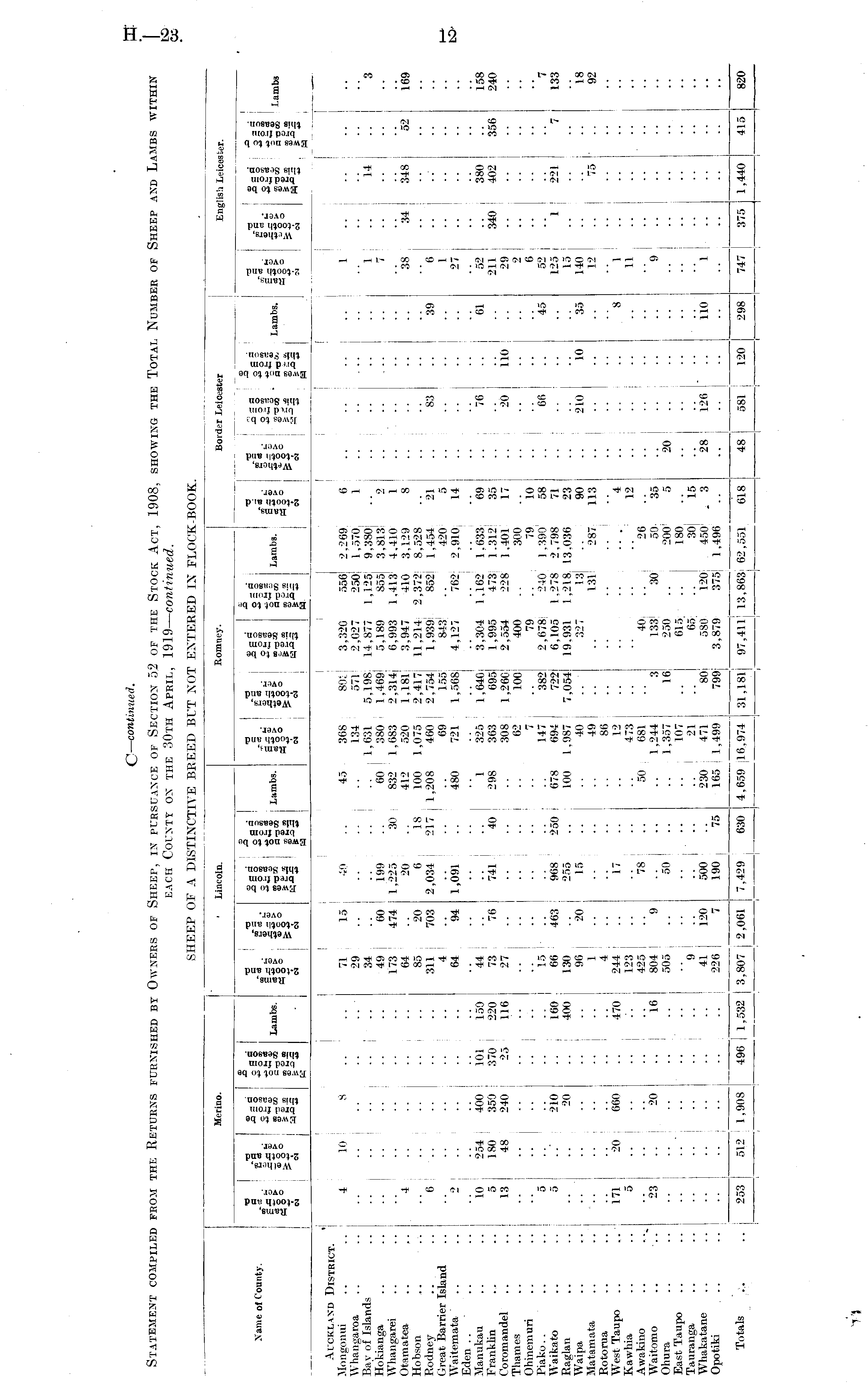 C— continued. Statement compiled from the Returns furnished by Owners of Sheep, in pursuance of Section 52 of the Stock Act, 1908, showing the Total Number of Sheep and Lambs within each County on the 30th April, 1919— continued. SHEEP OF A DISTINCTIVE BREED BUT NOT ENTERED IN FLOCK-BOOK.