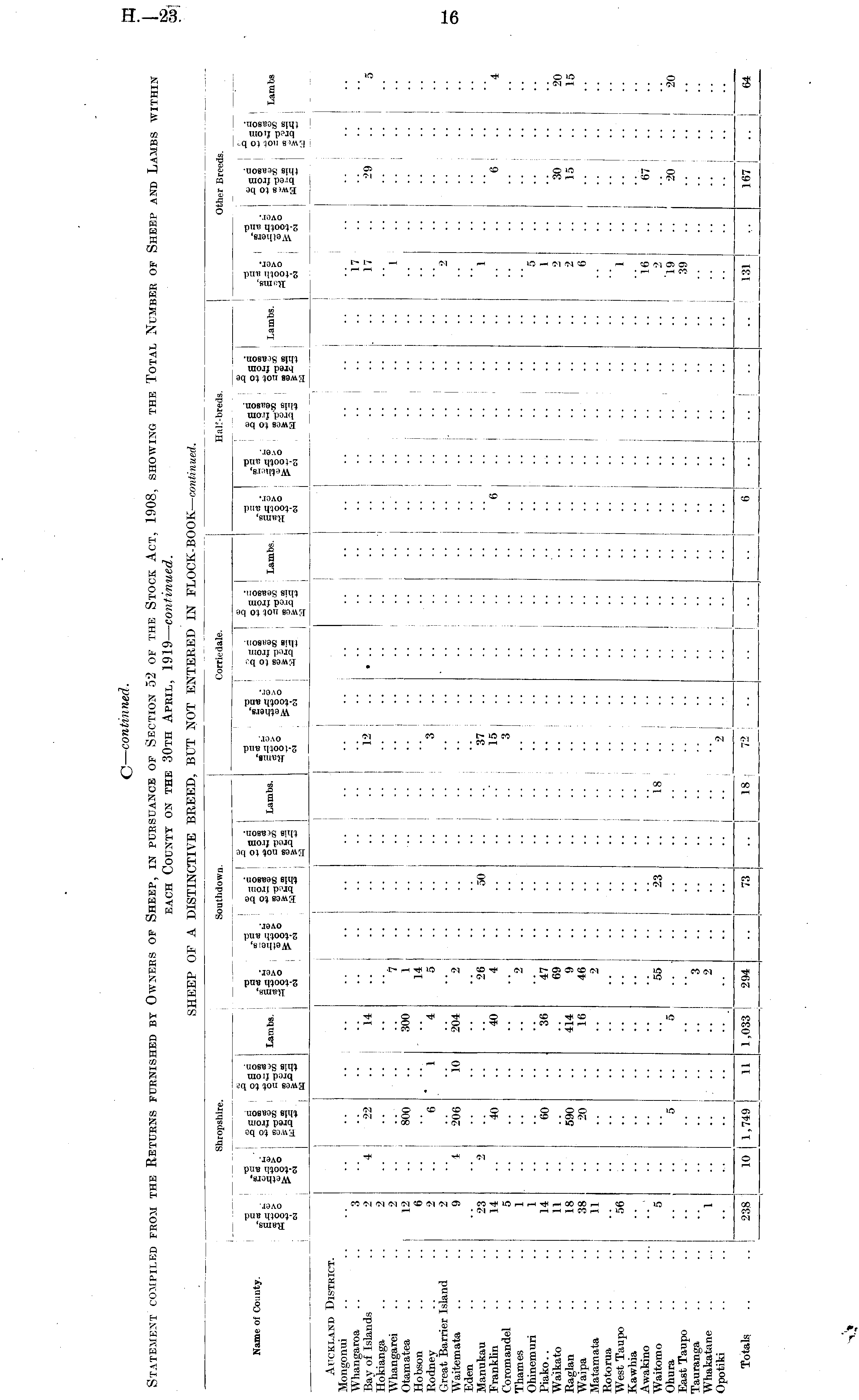 C— continued. Statement compiled from the Returns furnished by Owners of Sheep, in pursuance of Section 52 of the Stock Act, 1908, showing the Total Number of Sheep and Lambs within each County on the 30th April, 1919— continued. SHEEP OF A DISTINCTIVE BREED, BUT NOT ENTERED IN FLOCK-BOOK— continued.