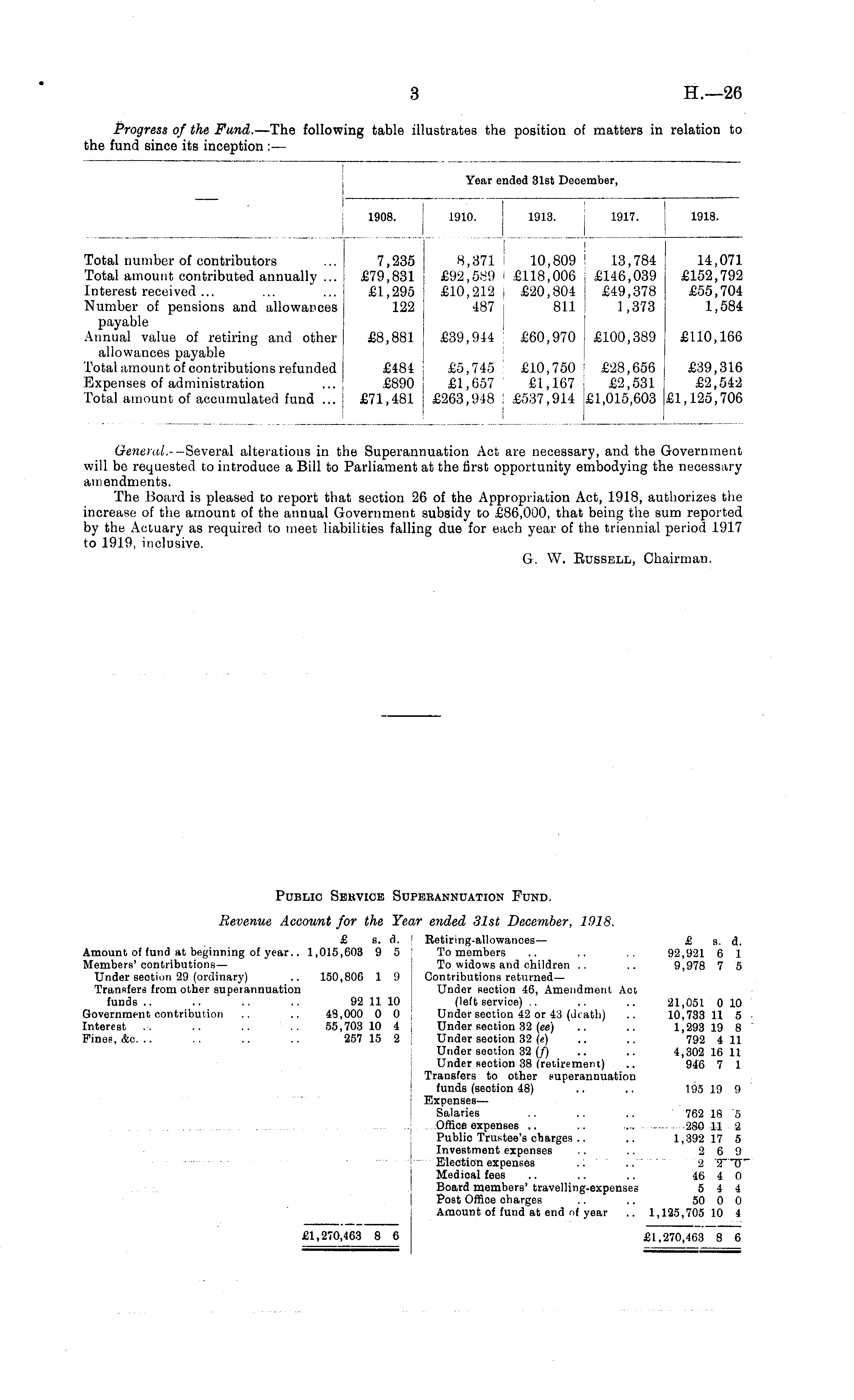 Progress of the Fund. —The following table illustrates the position of matters in relation to the fund since its inception : —