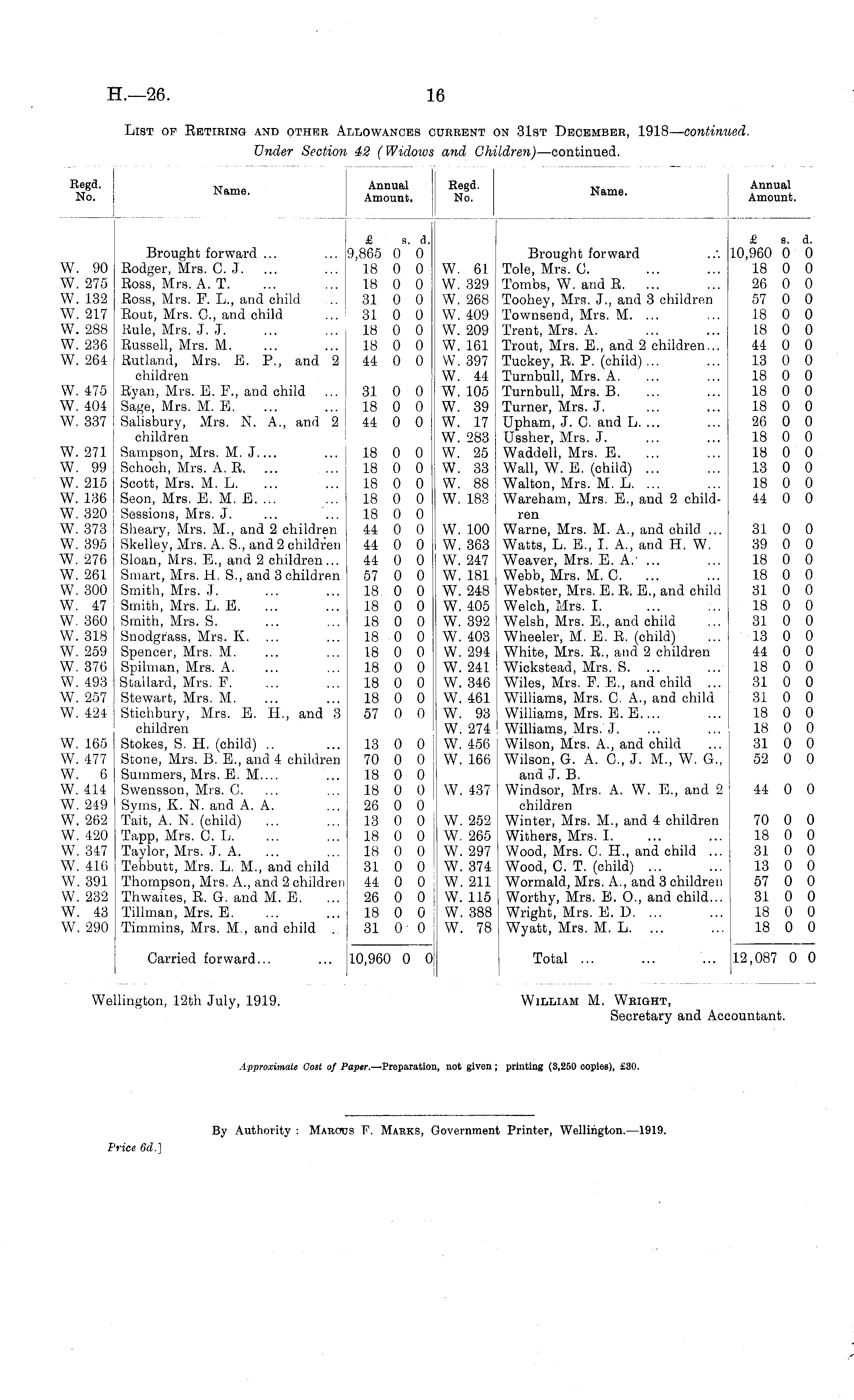 Wellington, 12th July, 1919. William M. Wright, Secretary and Accountant.