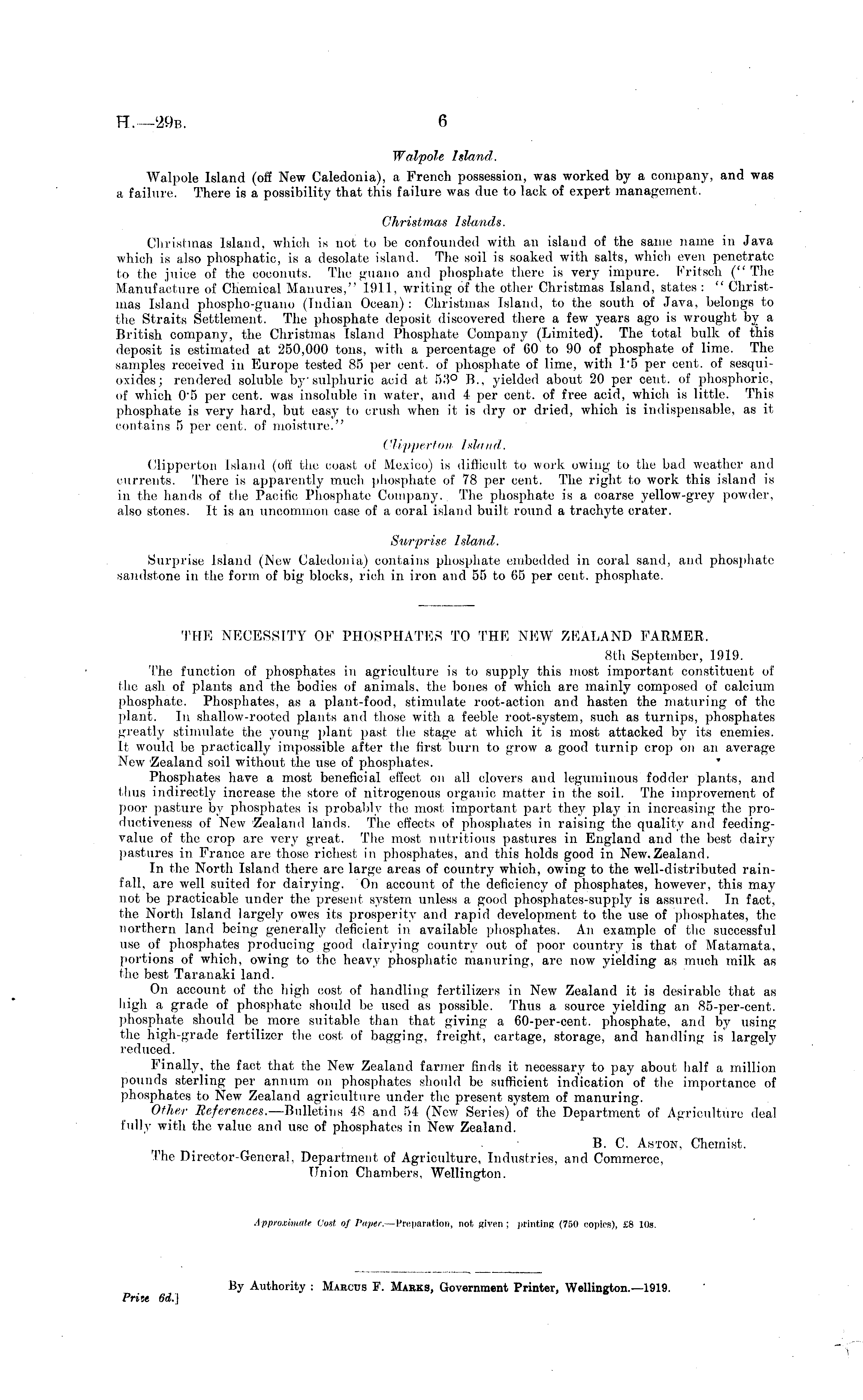 Authority : Marcus F. Marks, Government Printer, Wellington.—-1919.