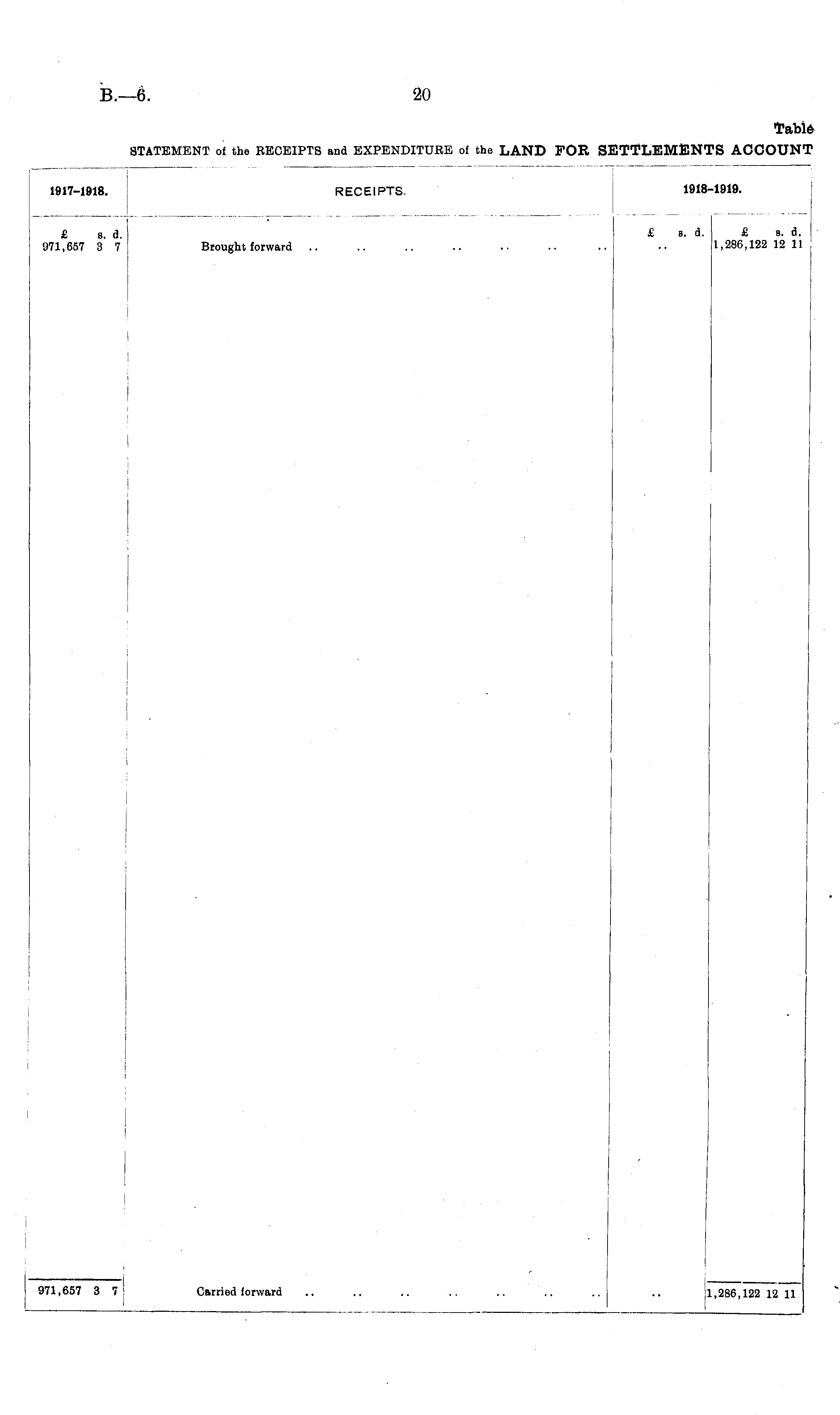 RECEIPTS. 1918 1919. 1917-1918. £ s. d. 971,657 3 7 Brought forward £ s. d. £ s. d. 1,286,122 12 11 I 971,657 3 7 I i I Carried forward 1,286,122 12 11