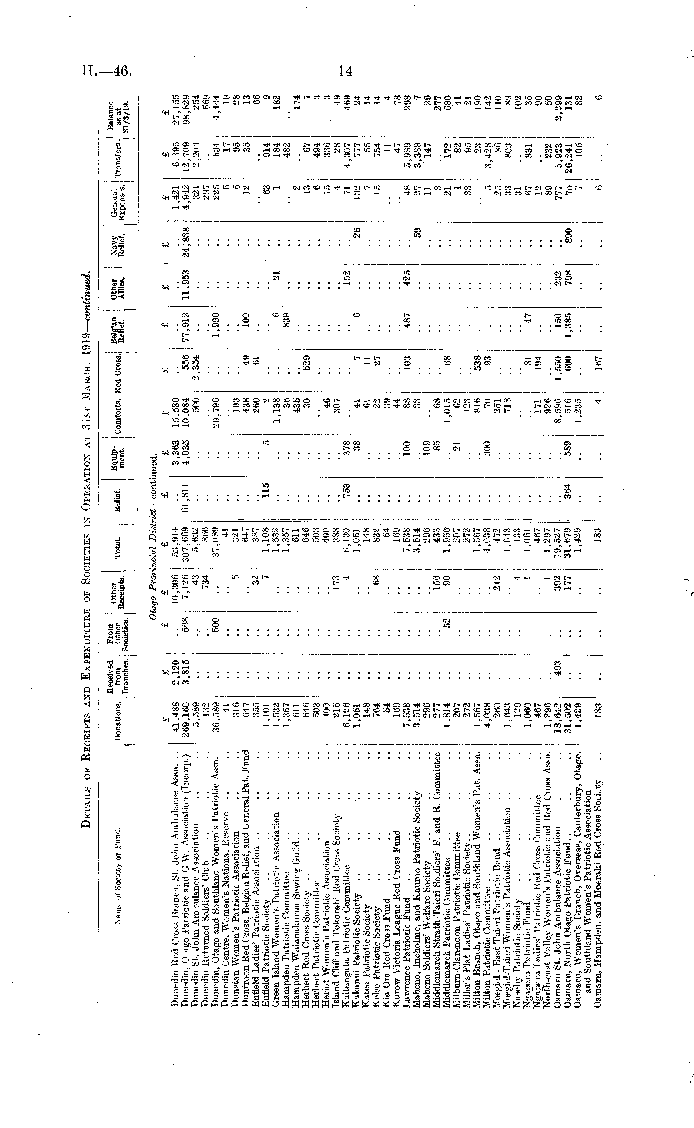 Name of Society or Fund. Received From other Donations. from Other T>„„ ir .t= Branches. ; Societies. ttecel P IB - Total. *** S; Comfort, Red Cross. » Other Navy j Transfera I »£ Oi go Provincial Distri ict —conti: med. £ 3,363 4,035 £ £ 41,488 2,120 269,160 3,815 5,589 132 36,589 41 316 647 355 1,101 1,532 1,357 611 646 503 400 215 6,126 1,051 148 764 54 169 7,538 3,514 296 277 1,814 207 i 272 i 1,567 i 4,038 ! 260 1,643 129 1,060 467 1,296 18,642 493 31,502 1,429 £ £ £ 10,306 53,914 7,126 307,669 43 ! 5,632 734 : 866 37,089 41 5 321 647 32 387 7 1,108 1,532 1,357 611 646 503 400 173 388 i 4 I 6,130 .. 1,051 148 68 i 832 54' 169 7,538 3,514 296 156 : 433 90 ; 1,956 207 272 1,567 4,038 212 ! 472 1.643 4 133 1 1,061 467 1 1,297 392 19,527 177 31,679 1,429 £ 61,811 115 753 364 £ 15,580 10,084 500 £ £ £ £ £ 1,421 4,942 321 297 225 5 5 12 £ 6,395 12,709 2,203 £ 27,155 98,829 254 £ 27,15! 98,82! 25< 56! 4,44' 1! 2! 1! 61 1 Dunedin Red Cross Branch, St. John Ambulance Assn. .. Dunedin, Otago Patriotic and G.W. Association (Incorp.) Dunedin St. John Ambulance Association Dunedin Returned Soldiers' Club Dunedin, Otago and Southland Women's Patriotic Assn. Dunedin Centre. Women's National Reserve Dunstan Women's Patriotic Association Duntroon Red Cross, Belgian Relief, and General Pat. Fund Enfield Ladies' Patriotic Association Enfield Patriotic SocietyGreen Island Women's Patriotic Association Hampden Patriotic Committee Hampden-Waianakurua Sewing Guild Herbert Red Cross Society Herbert Patriotic Committee Heriot Women's Patriotic Association Island Cliff and Tokorahi Red Cross Society Kaitangata Patriotic Committee Kakanui Patriotic Society Katea Patriotic Society Kelso Patriotic Society Kia Ora Red Cross Fund Kurow Victoria League Red Cross Fund Lawrence Patriotic Fund Maheno, Incholme, and Kauroo Patriotic Society Maheno Soldiers' Welfare Society Middlemarch Strath-Taieri Soldiers' F. and R. Committee Middlemarch Patriotic Committee Miiburn-Clarendon Patriotic (.'ommittee Miller's Flat Ladies' Patriotic Society.. Milton Branch, Otago and Southland Women's Pat. Assn. Milton Patriotic Committee Mosgiel - East Taieri Patriotic Band Mosgiel-Taieri Women's Patriotic Association Naseby Patriotic Society Ngapara Patriotic Fund Ngapara Ladies' Patriotic Red Cross Committee North-east Valley Women's Patriotic and Red Cross Assn. Oamaru St. John Ambulance Association Oamaru, North Otago Patriotic Fund.. Oamaru, Women's Branch, Overseas, Canterbury, Otago. and Southland Women's Patriotic Association Oamaru, Hampden, and Moeraki Red Cross Society 568 556 2,354 77,912 11,953 24,838 500 29,796 1,990 634 17 95 35 569 4,444 19 28 13 5 193 438 260 2 1,138 36 435 30 49 61 100 21 63 1 914 184 482 66 9 182 18; 6 839 2 13 6 15 4 71 132 7 15 17< 529 67 494 336 28 4,307 777 55 754 11 47 5,989 3,388 147 172 82 95 23 3,428 86 803 831 232 5,923 26,241 105 174 7 3 3 49 469 24 14 14 4 78 298 7 29 277 680 41 21 190 142 110 89 102 35 90 50 2,299 131 82 46 307 4! 46! lr 378 38 152 41 61 22 39 44 88 33 7 11 27 6 26 100 103 487 425 48 27 11 3 21 33 109 85 59 "52 21 68 1,015 62 123 816 70 251 718 "68 538 93 ■■ 300 •• 5 25 33 31 67 12 89 777 75 7 " 81 194 • 171 926 8,596 516 1,235 47 - 1,550 690 150 1,385 232 798 - i 589 890 183 ' .. I .„ 4 167 6 R 183 II -, I