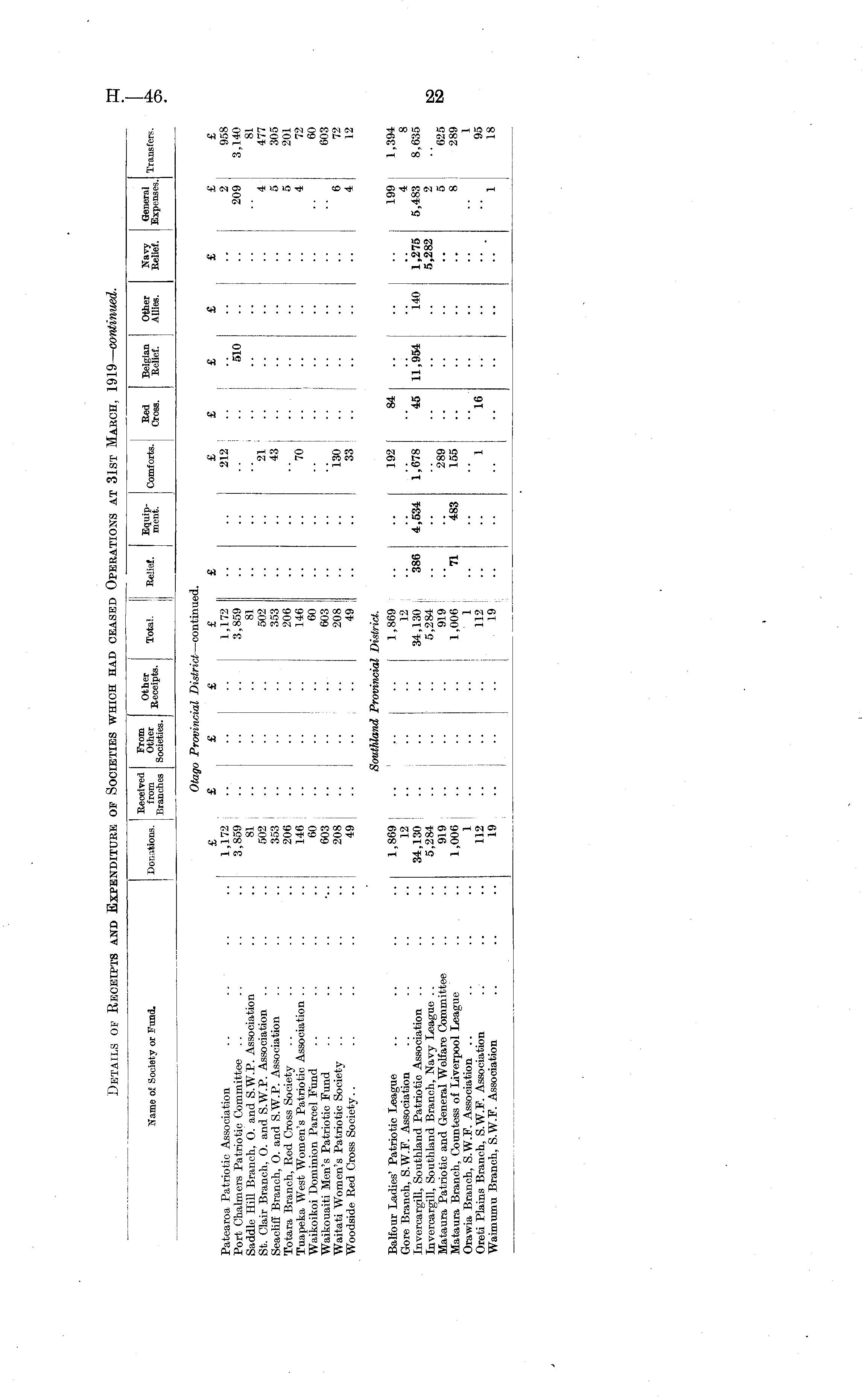 Name of Society or Fand. Received From other Donations. from Other -R„,,«iT,t. Branches Societies. ■ Kecel P ra - Tota!. Equip- romfQrt „ Bed Belgian Other Navy General Transfers K *- 1 -- ment. comtora. Cross BteBA Allies. Relief. Expenses. lransrers - Otago Provincial Distric ;t —continue d. £ 1,172 I 3,859 81 502 353 206 146 60 603 208 49 £ £ £ £ 1,172 3,859 81 502 353 206 146 60 603 208 49 £ £ 212 ! £ £ 510 £ £ £ 2 209 £ 958 3,140 81 477 305 201 72 60 603 72 12 Patearoa Patriotic Association .. Port Chalmers Patriotic Committee Saddle Hill Branch, O. and S.W.P. Association St. Clair Branch, O. and S.W.P. Association .. SeacUff Branch, 0. and S.W.P. Association Totara Branch, Red Cross Society Tuapcka West Women's Patriotic Association .. Waikoikoi Dominion Parcel Fund Waikouaiti Men's Patriotic Fund Waitati Women's Patriotic Society Woodside Red Cross Society.. ' 21 43 j 70 4 5 5 4 130 33 6 4 Southland Provincial ! District. 192 | 84 199 4 5,483 2 5 8 1,394 8 Balfour Ladies' Patriotic League Gore Branch, S.W.F. Association InvercargiU, Southland Patriotic Association .. InvercargiU, Southland Branch, Navy League .. Mataura Patriotic and General Welfare Committee Mataura Branch, Countess of Liverpool League Orawia Branch, S.W.F. Association Oreti Plains Branch, S.W.F. Association Waimumu Branch, S.W.F. Association 1,869 12 34,130 5,284 919 1,006 1 112 19 1,869 12 34,130 | 5,284 919 1,006 1 112 19 386 71 4,534 483 1,678 289 155 45 11,954 140 1,275 5,282 8,635 625 289 1 95 18 1 16 •• 1