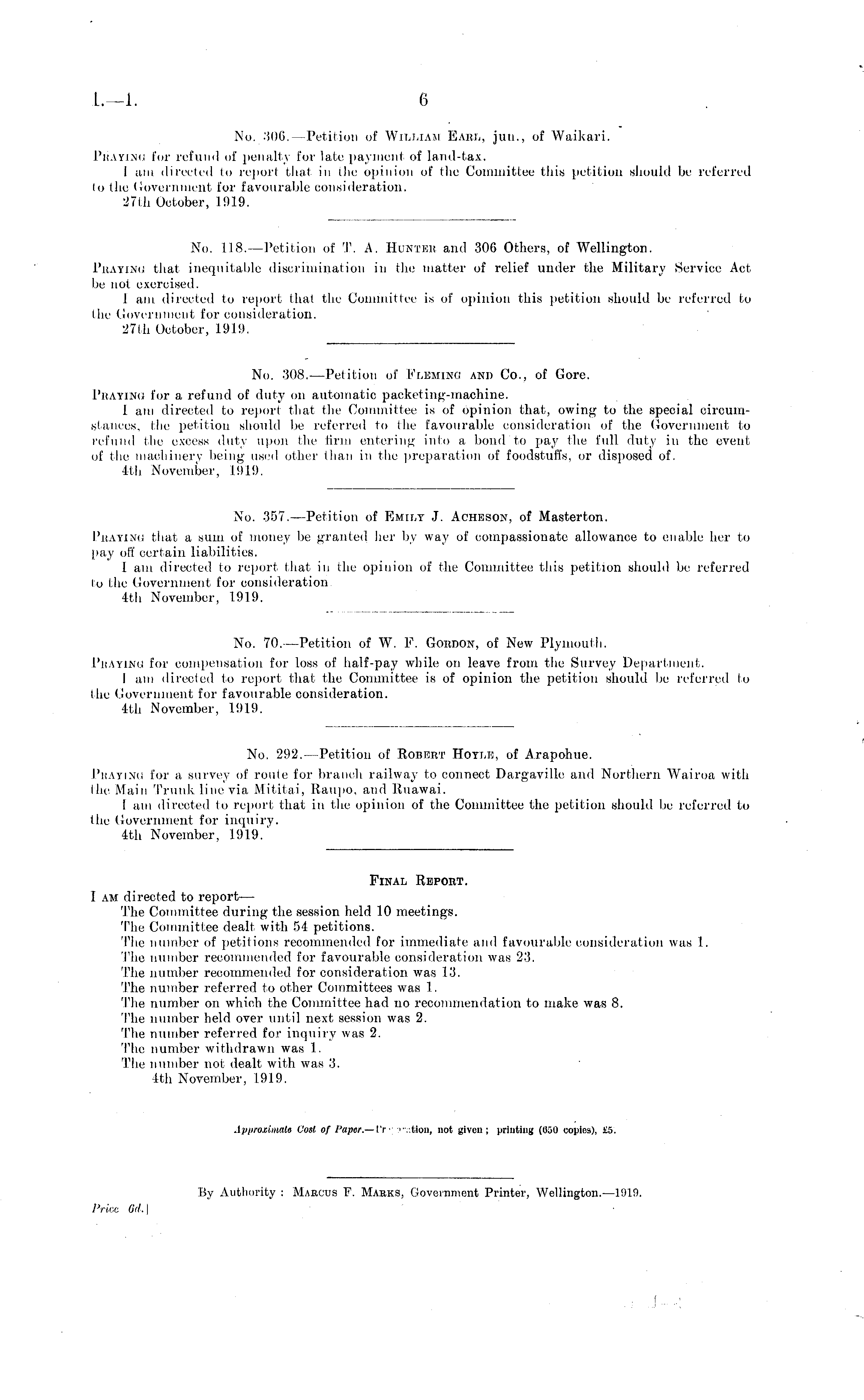 By Authority : Marcus F. Marks, Government Printer, Wellington.—l9l9.