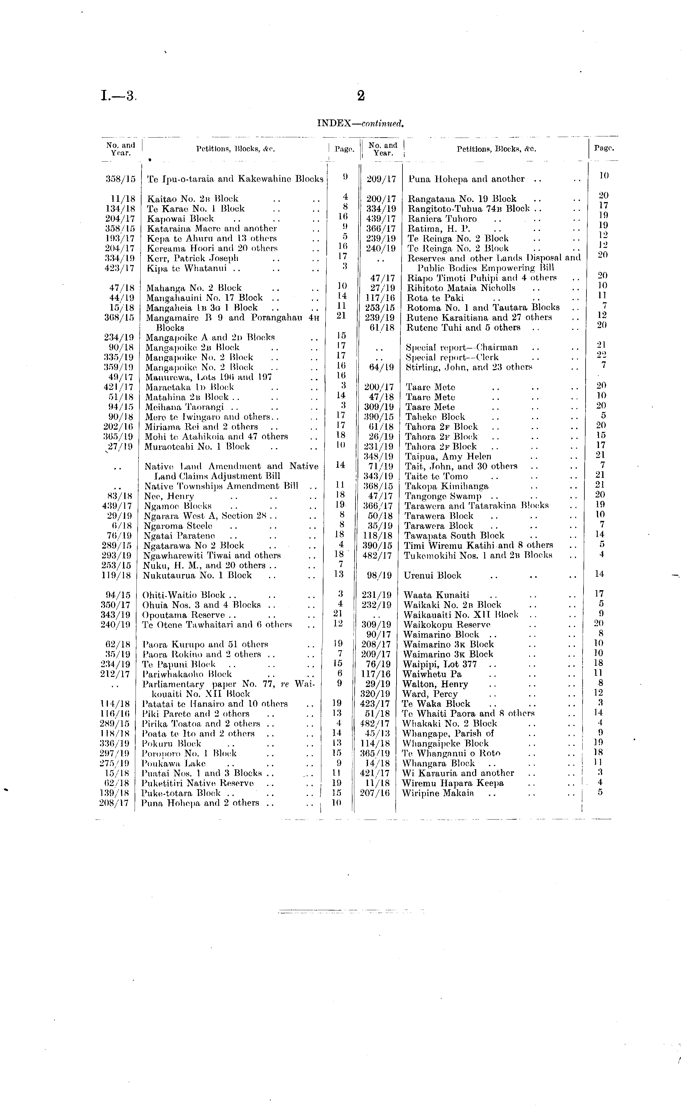 No. and Year. Petitions, Blocks, &0. Pagi ! 209/17 Puna Ilohepa and another .. 10 200/17 334/19 439/17 366/17 239/19 240/19 Rangataua No. 19 Block Raiigitoto-Tulma 74n Block Raniera Tuhoro . . Ratima, H. P. Te Reinga No. 2 Block Tp Reinga, No. 2 Block Reserves and other Lands Disposal and Public Bodies Empowering Bill Riupo Timoti Puhipi and 4 others I'iliitoto Mataia Nieholls Rota te Paki Rotoma No. I ami Tautara Blocks Rutene Karaitiana and 27 others Rutene Tuhi and 5 others 20 17 19 19 12 12 20 47/17 27/19 117/16 253/15 239/19 61/18 20 10 II 7 12 20 Special report—Chairman Special report--Clerk Stirling, John, and 23 others 21 22 7 64/19 200/17 47/18 309/19 390/15 61 IS 26/19 231/19 348/19 71/19 343/19 368/15 47/17 366/17 50/18 35/19 118/18 390/15 482/17 Taarc Mete Taare Mete Taare Mete Taheke Block Tahora 2* Block Tahora 2f Block Tahora 2k Block Taipua, Amy Helen Tail., John, and 30 others Taite te Tonio Takopa Kimihanga Tangonge Swamp .. Tarawera and Tatarakina Blocks Tarawera Block Tarawera Block Tawapata South Block Timi Wircmu Katihi and 8 others Tukemokihi Nos. 1 and 2b Blocks 20 10 20 5 20 15 17 21 7 21 21 20 19 10 7 II X 4 98/19 Urenui Block 14 231/19 232/19 309/19 90/17 208/17 209/17 76/19 117/16 29/19 320/19 123/17 51/18 182/17 45 13 114/18 165/19 14/18 121/17 11/18 ?07/10 Waata Kunaiti Waikaki No. 2n Block Waikauaiti No. XII Block .. Waikokopu Reserve Waimarino Block Waimarino 3k Block Waimarino 3k Block Waipipi, Lot 377 Waiwhotu Pa Walton, Henry Ward, Percy Te Waka Block Te Whaiti Paora and 8 others Whakaki No. 2 Block Whangape, Parish of Whangaipeke Block ., .. Te W'luing.inui o Roto .. Whangara Block .. .. .. W'i Karauria and another .. Wiremu Hapara Keepa .. .. I Wiripine Makain .. .. 17 5 9 20 8 10 10 18 11 8 12 3 II ■I 9 19 18 11 3 4 5
