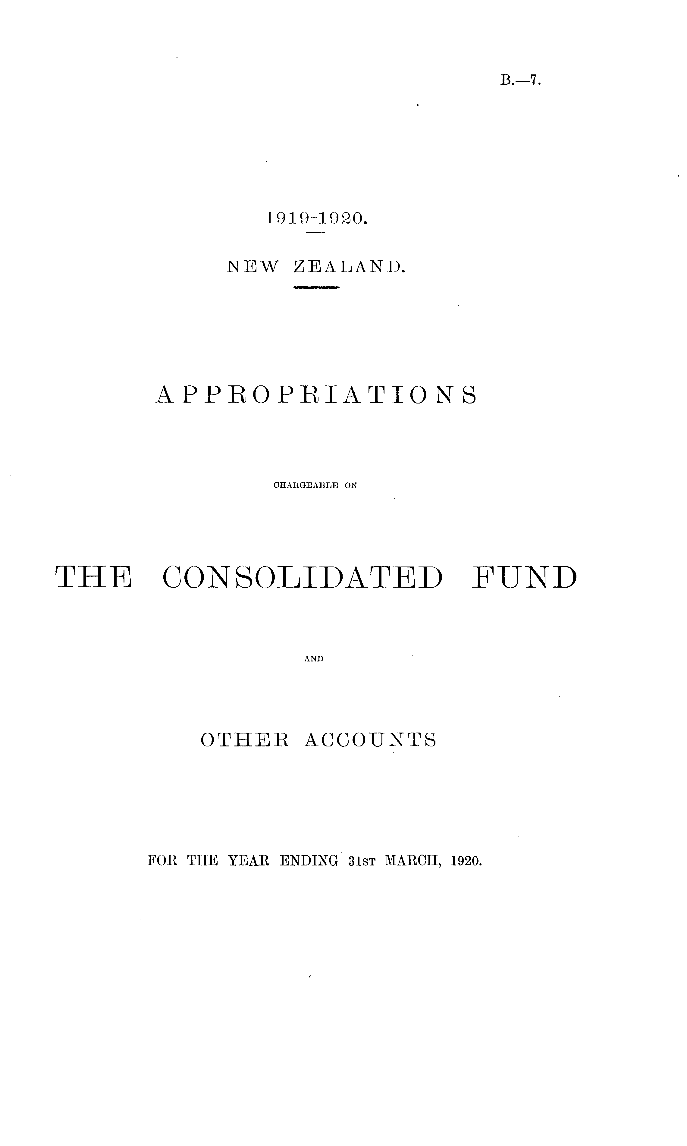 APPROPRIATIONS CHARGEABLE ON THE CONSOLIDATED FUND AND OTHER ACCOUNTS FOR THE YEAR ENDING 31st MARCH, 1920.