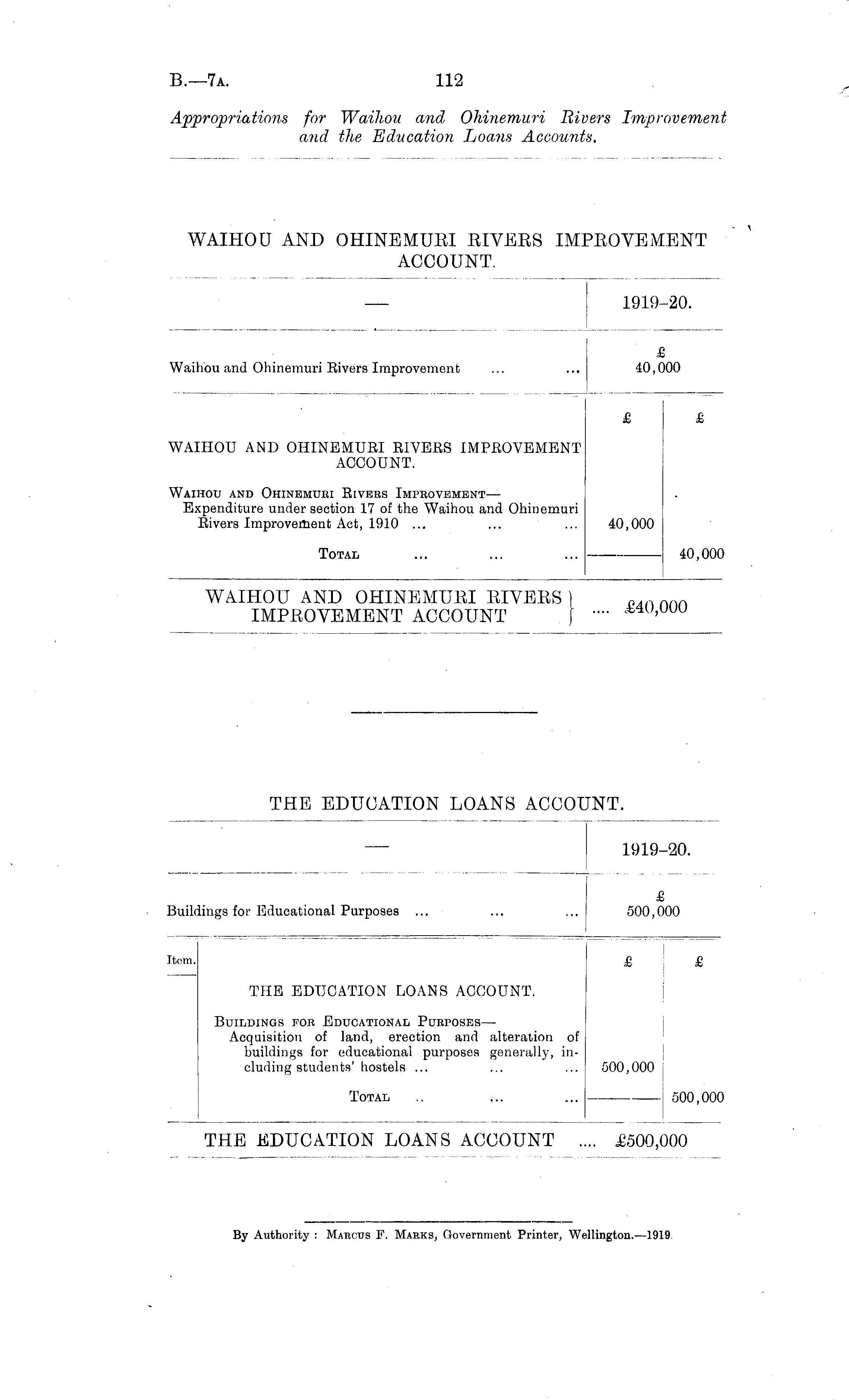 Appropriations for Waihou and, Ohinemuri Rivers Improvement and the Education, Loans Accounts.