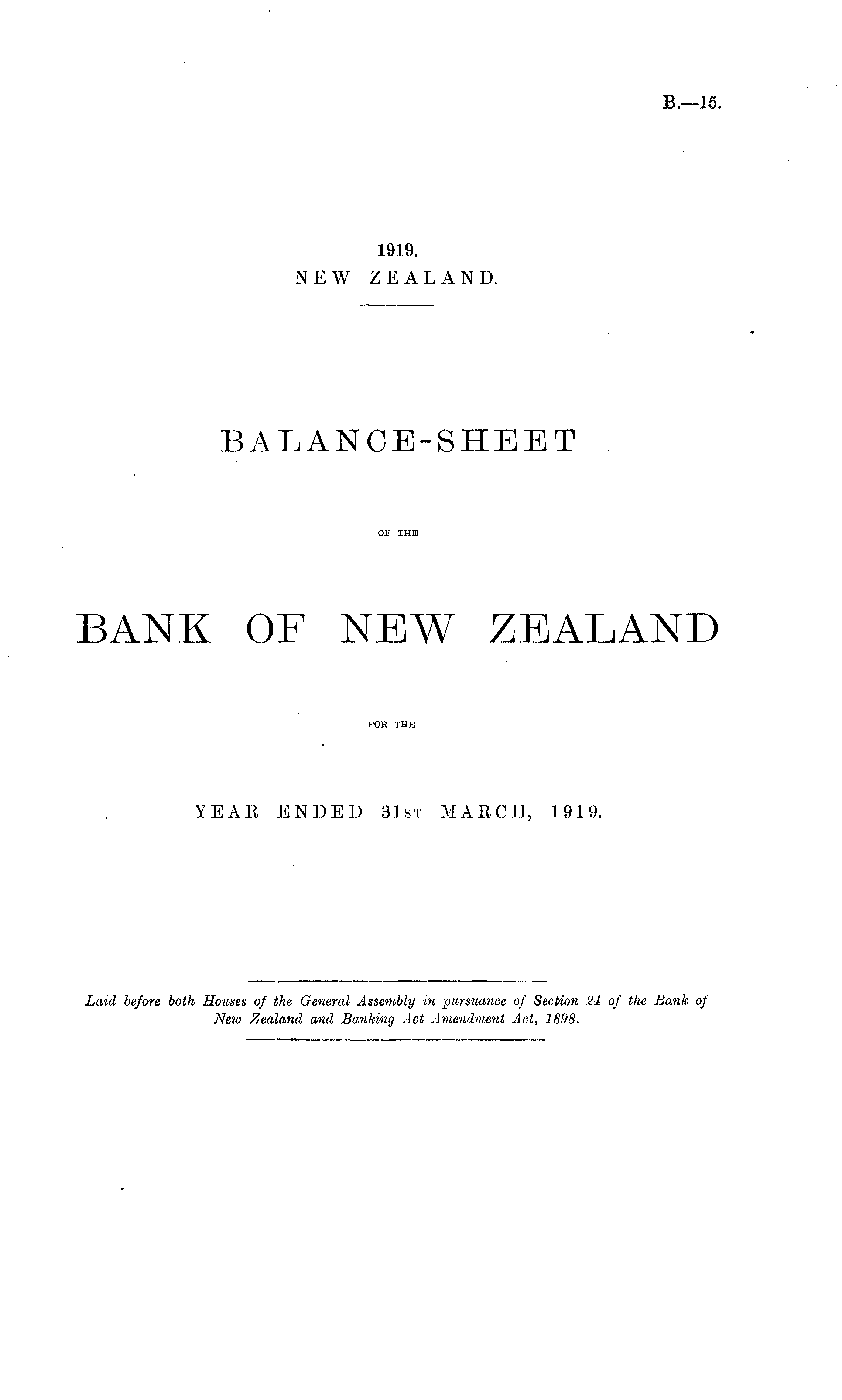 BALANCE-SHEET OF THE BANK OF NEW ZEALAND FOR THE YEAR ENDED 31st MARCH, 1919.
