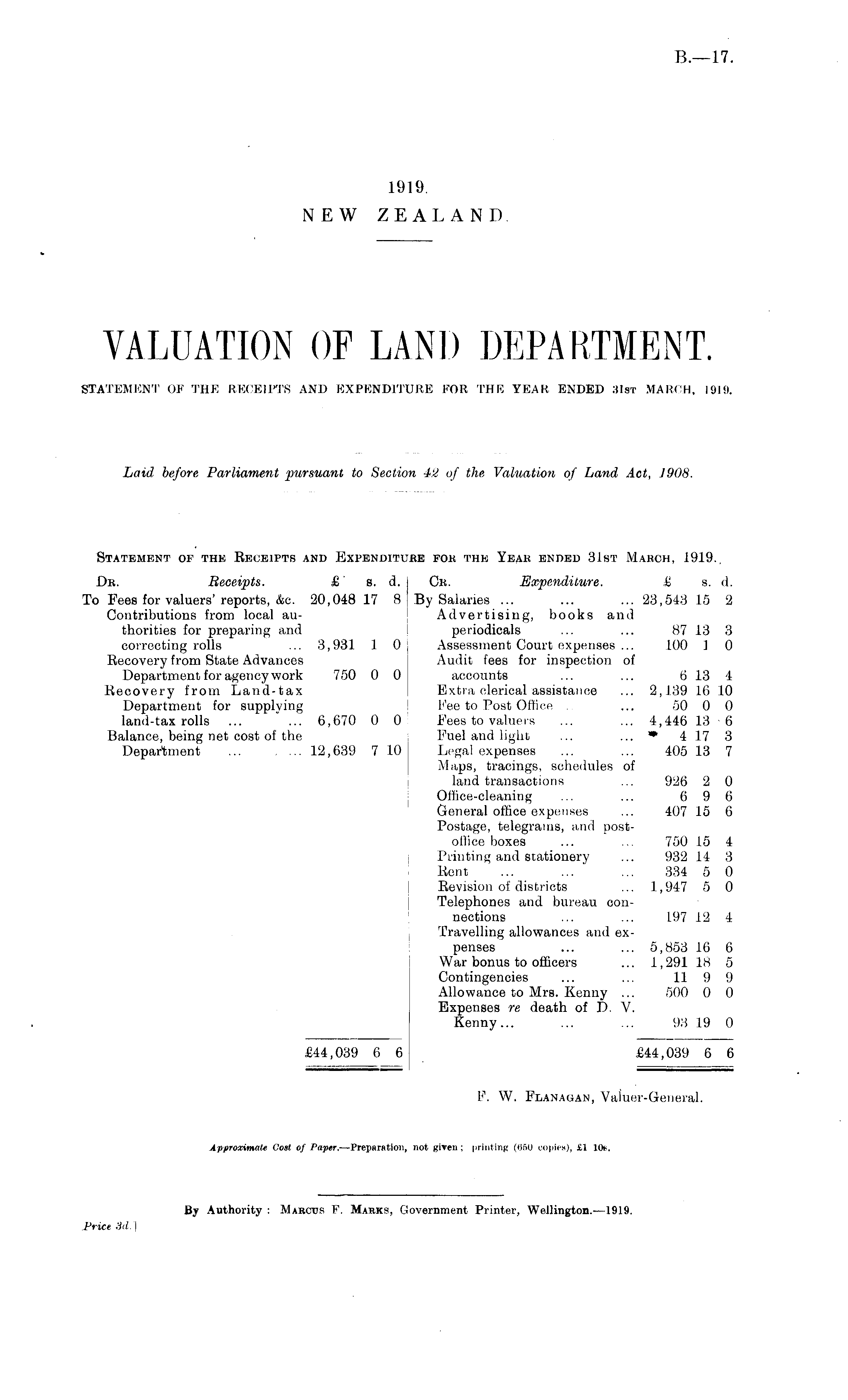 Authority : Marcos E. Marks, Government Printer, Wellington.—l9l9.