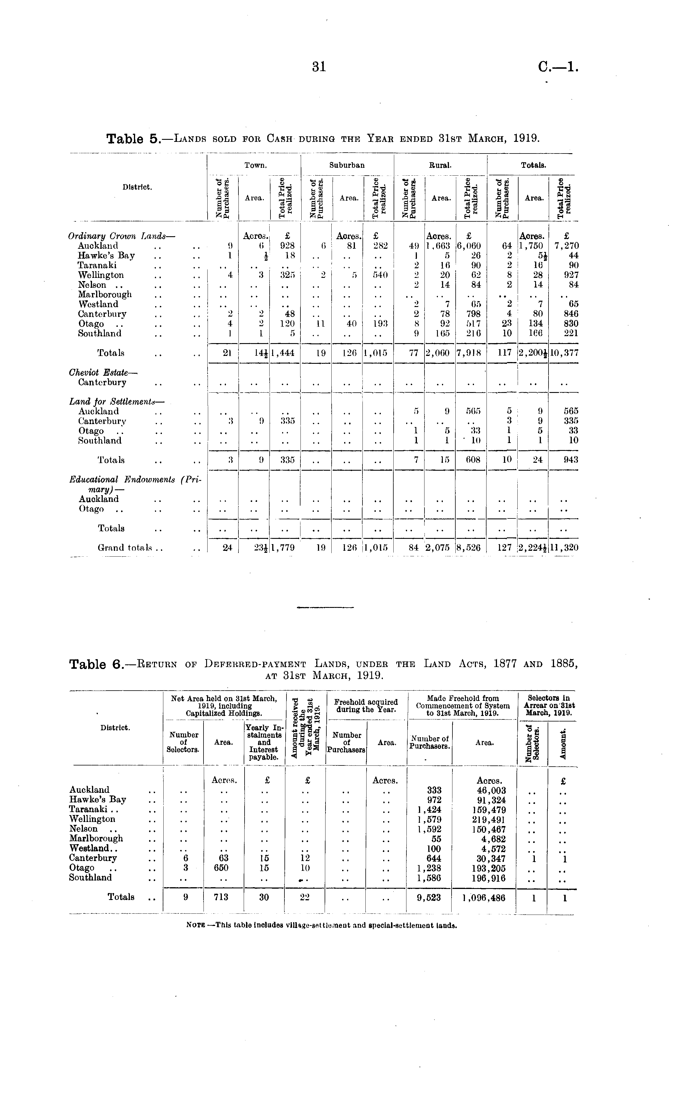 Table 6. — Return of Deferred-payment Lands, under the Land Acts, 1877 and 1885, at 31st March, 1919.