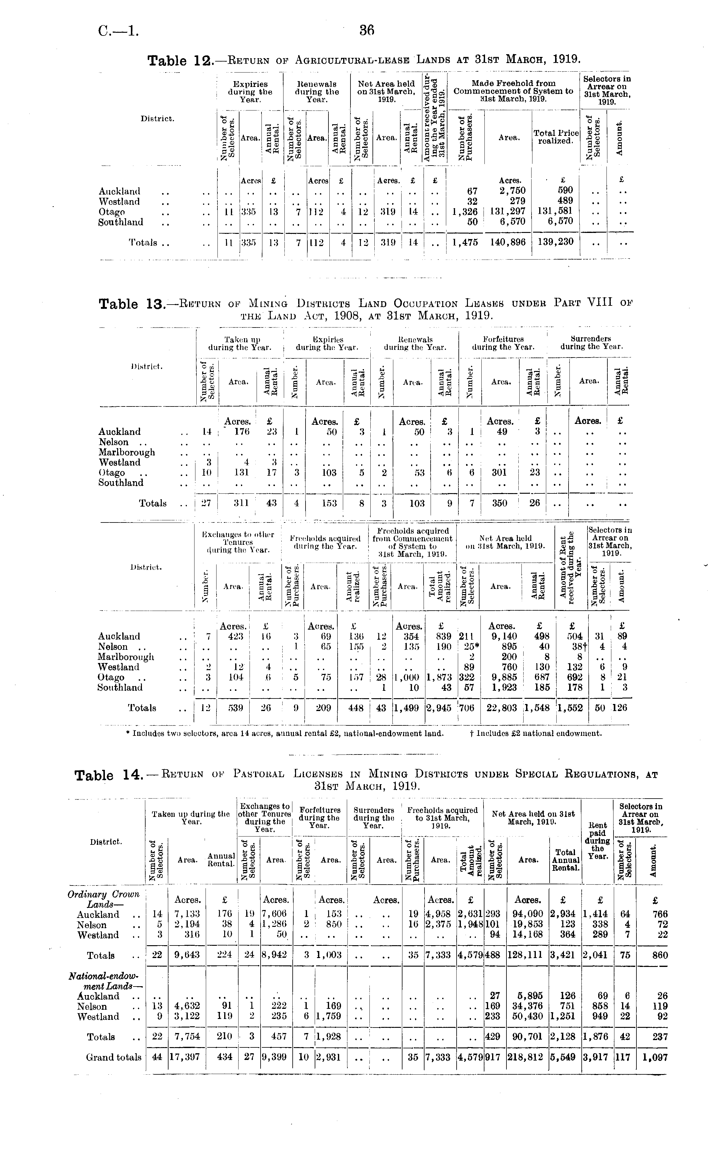 Table 12. — Return of Agricultural-lease Lands at 31st March, 1919.
