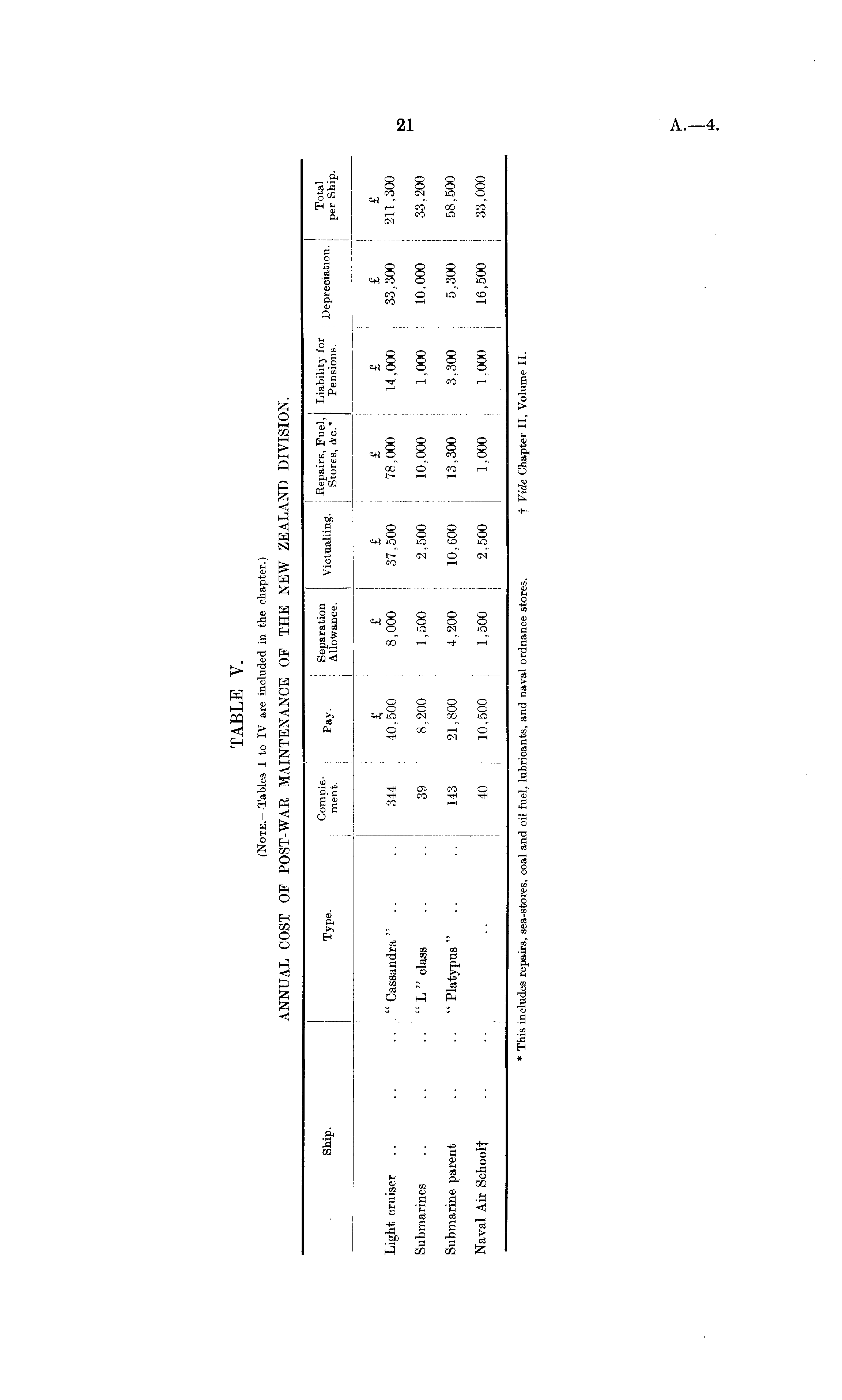 TABLE V. (Note.—Tables I to IV are included in the chapter.) ANNUAL COST OF POST-WAR MAINTENANCE OF THE NEW ZEALAND DIVISION.
