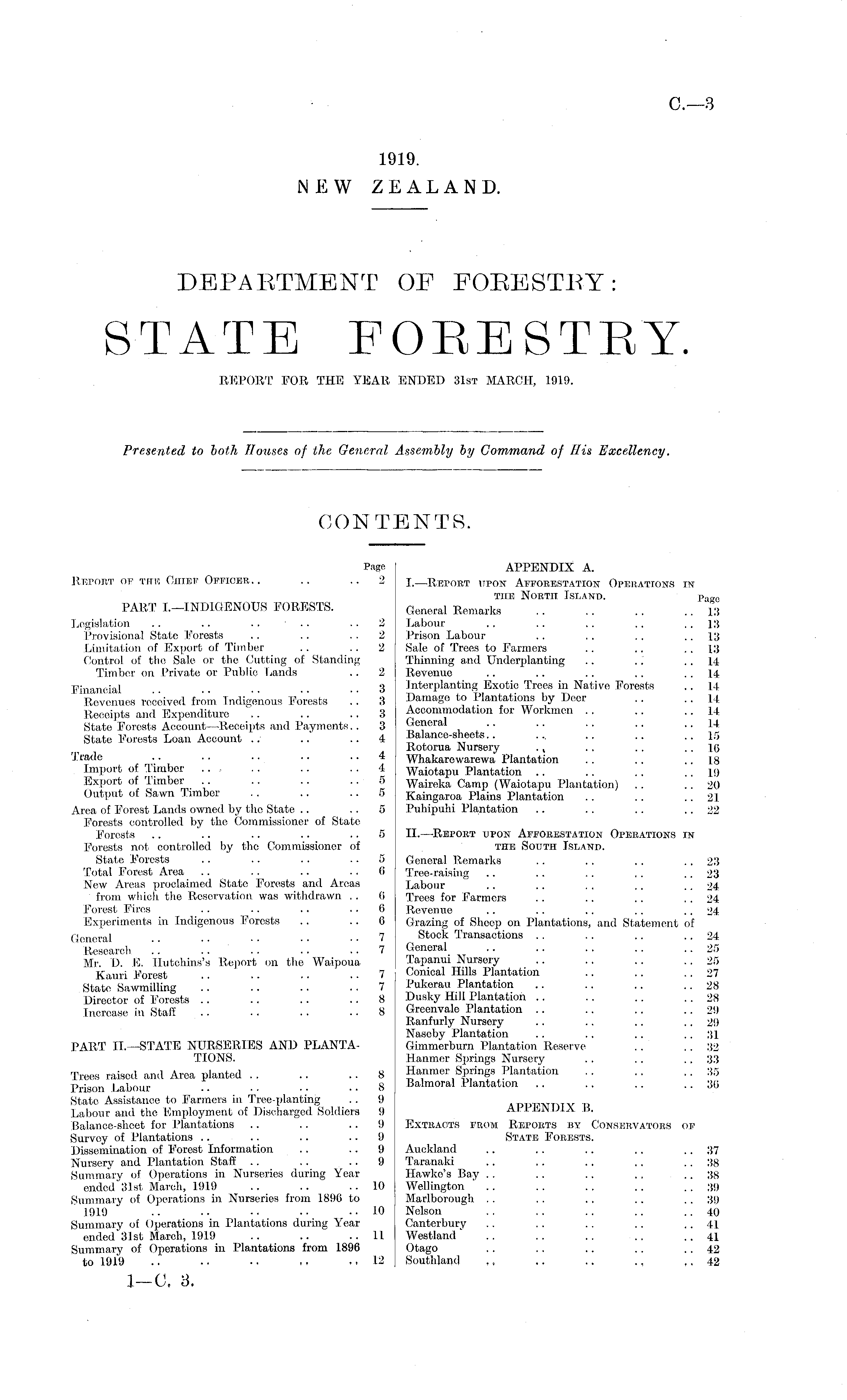 DEPARTMENT OF FORESTRY: STATE FORESTRY. REPORT FOR THE YEAR ENDED 31st MARCH, 1919.