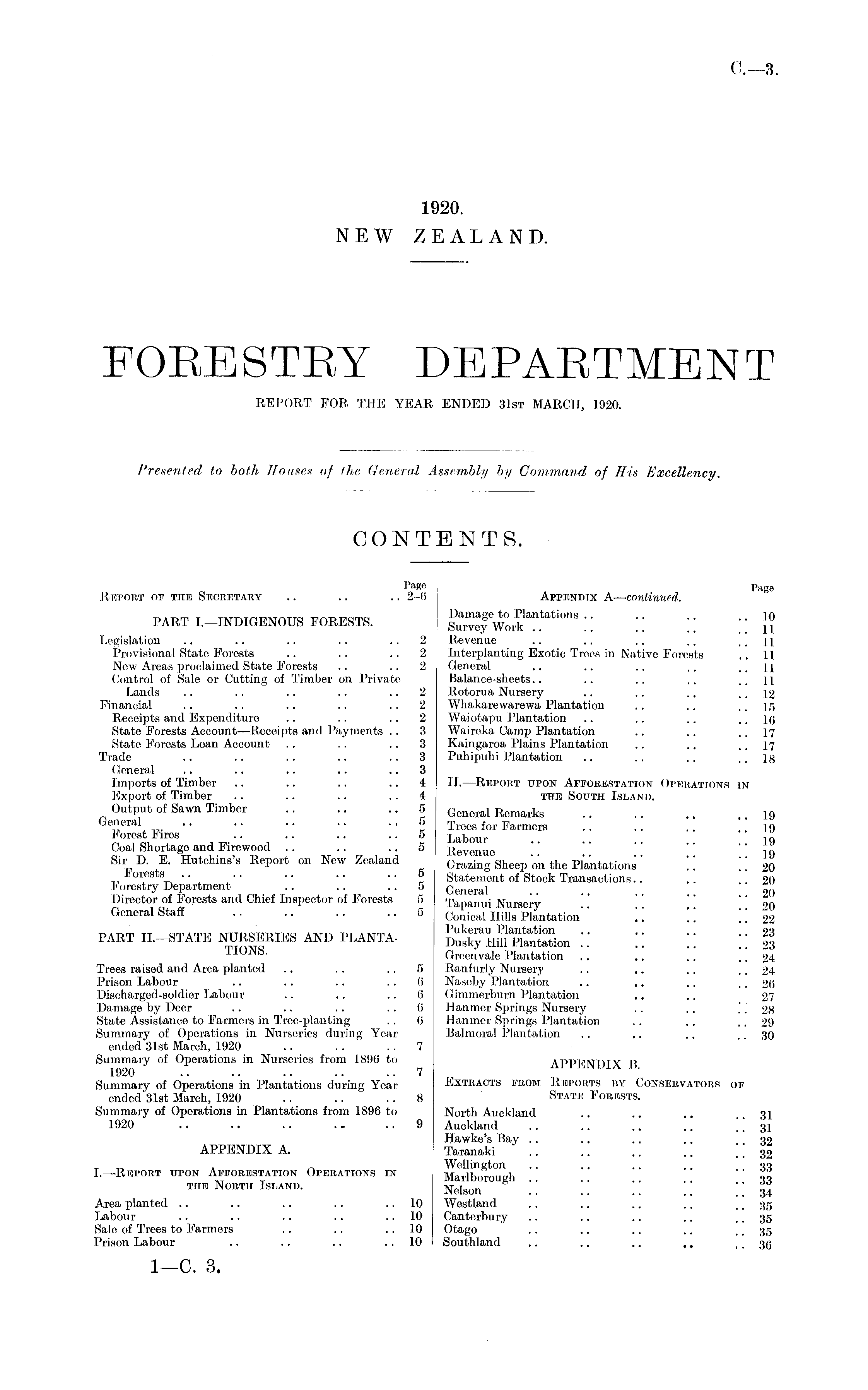 FORESTRY DEPARTMENT REPORT FOR THE YEAR ENDED 31st MARCH, 1920.