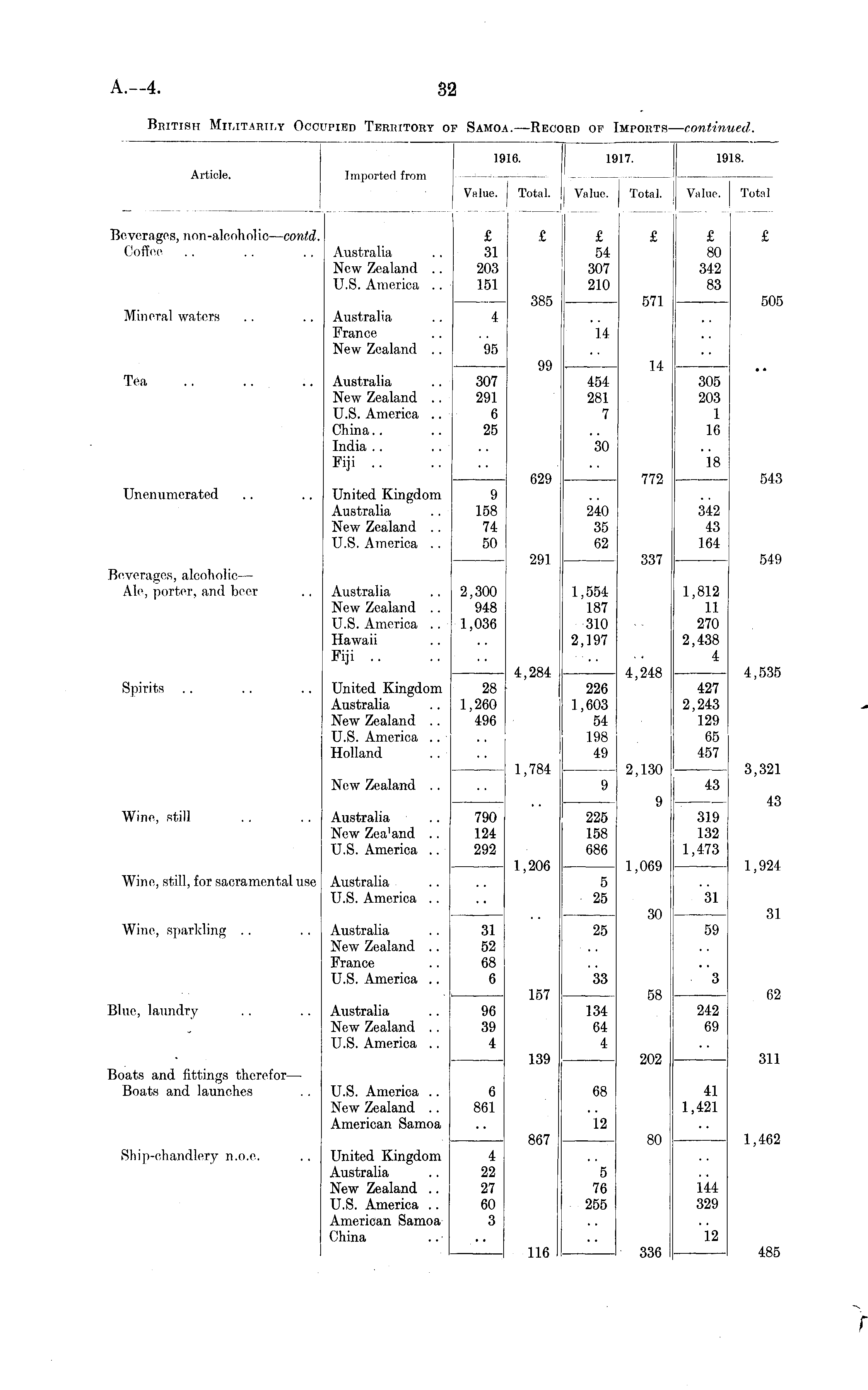 British Militarily Occupied Territory of Samoa. —Record of Imports— continued.