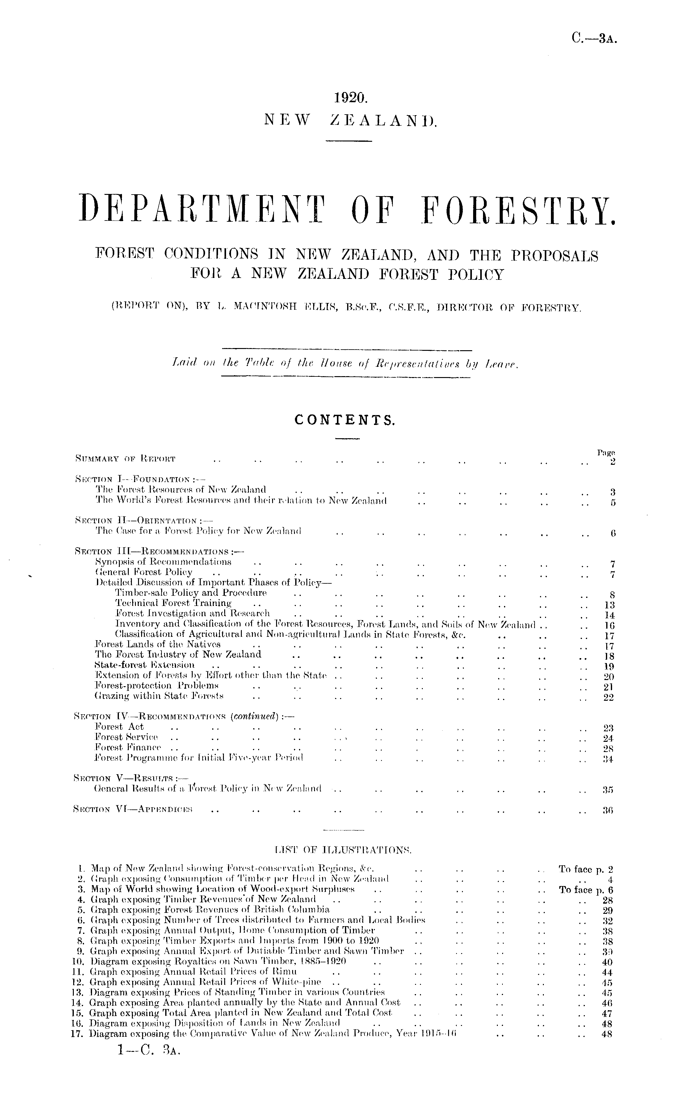 DEPARTMENT OF FORESTRY. FOREST CONDITIONS IN NEW ZEALAND, AND THE PROPOSALS FOR A NEW ZEALAND FOREST POLICY (REPORT ON), BY L. MACINTOSH ELLIS, B.Sc.F., C.S.F.E., DIRECTOR OF FORESTRY.