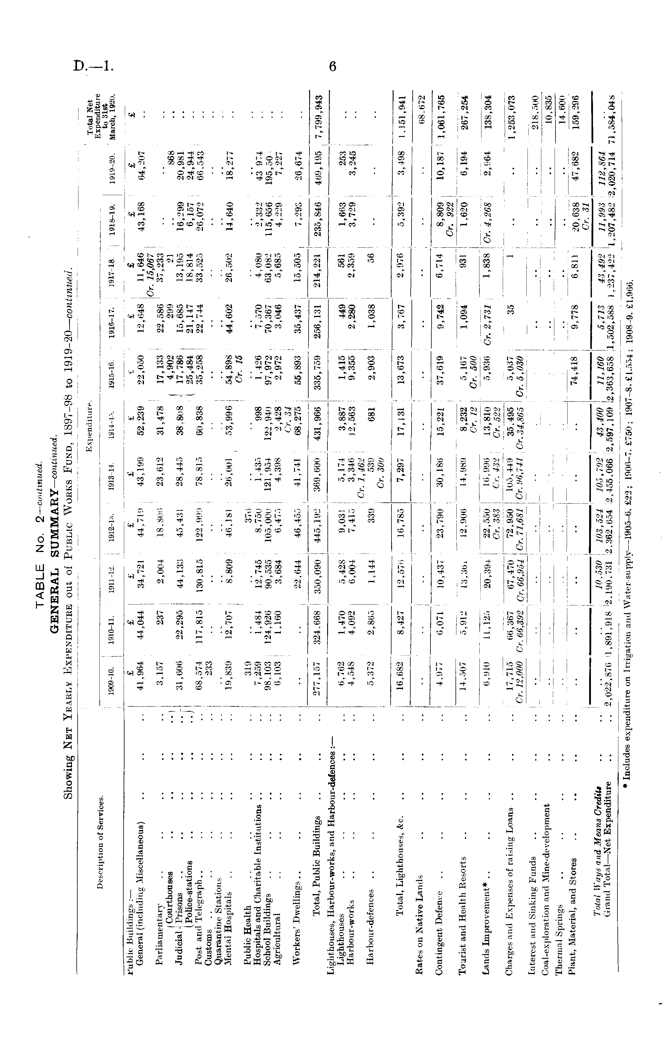 TABLE No. 2—continued. GENERAL SUMMARY-continued. Showing Net Yearly Expenditure out of Public Works Fund, 1897-98 to 1919-20— continued.