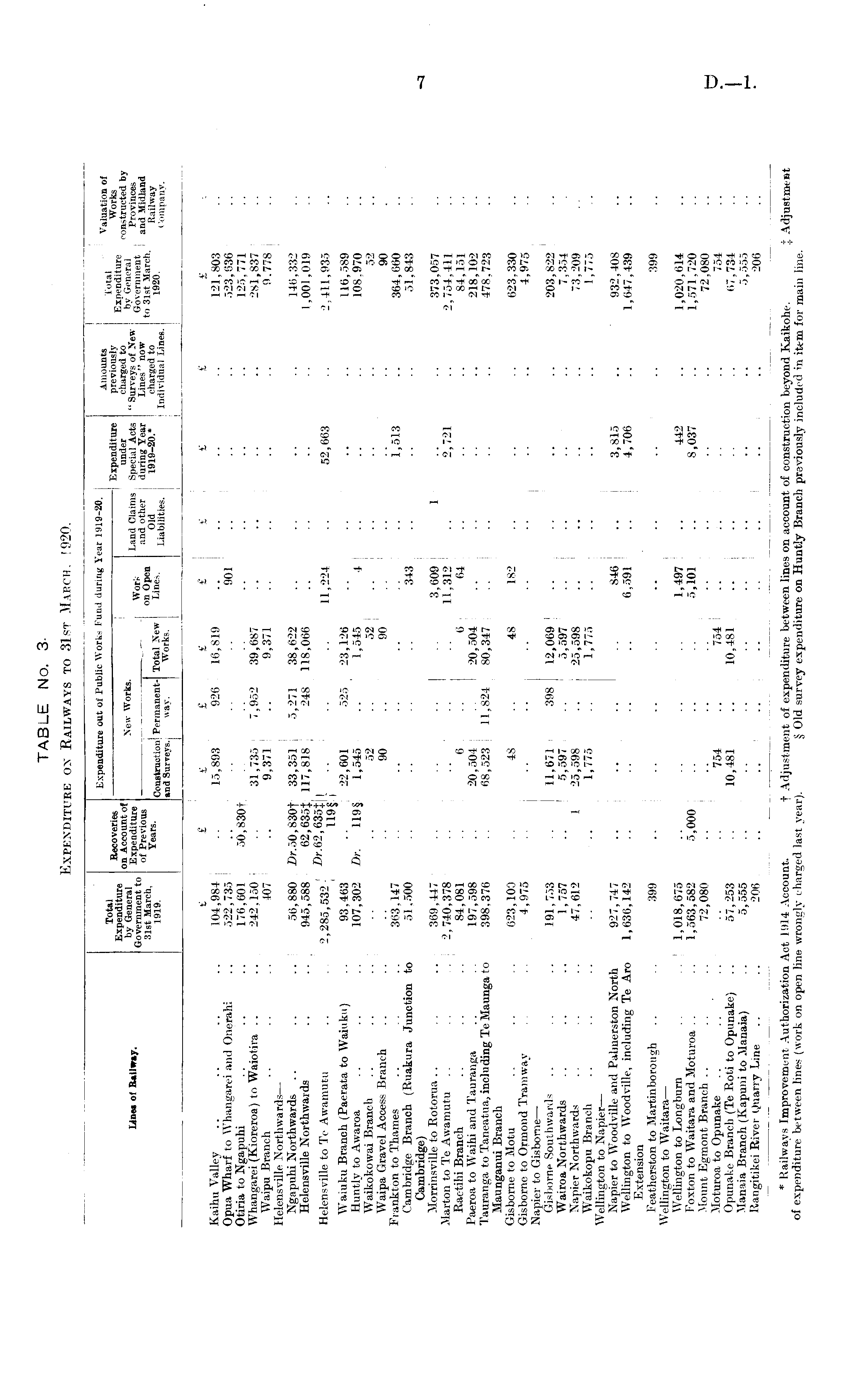 TABLE No. 3. Expenditure on Railways to 31st March, 1920.