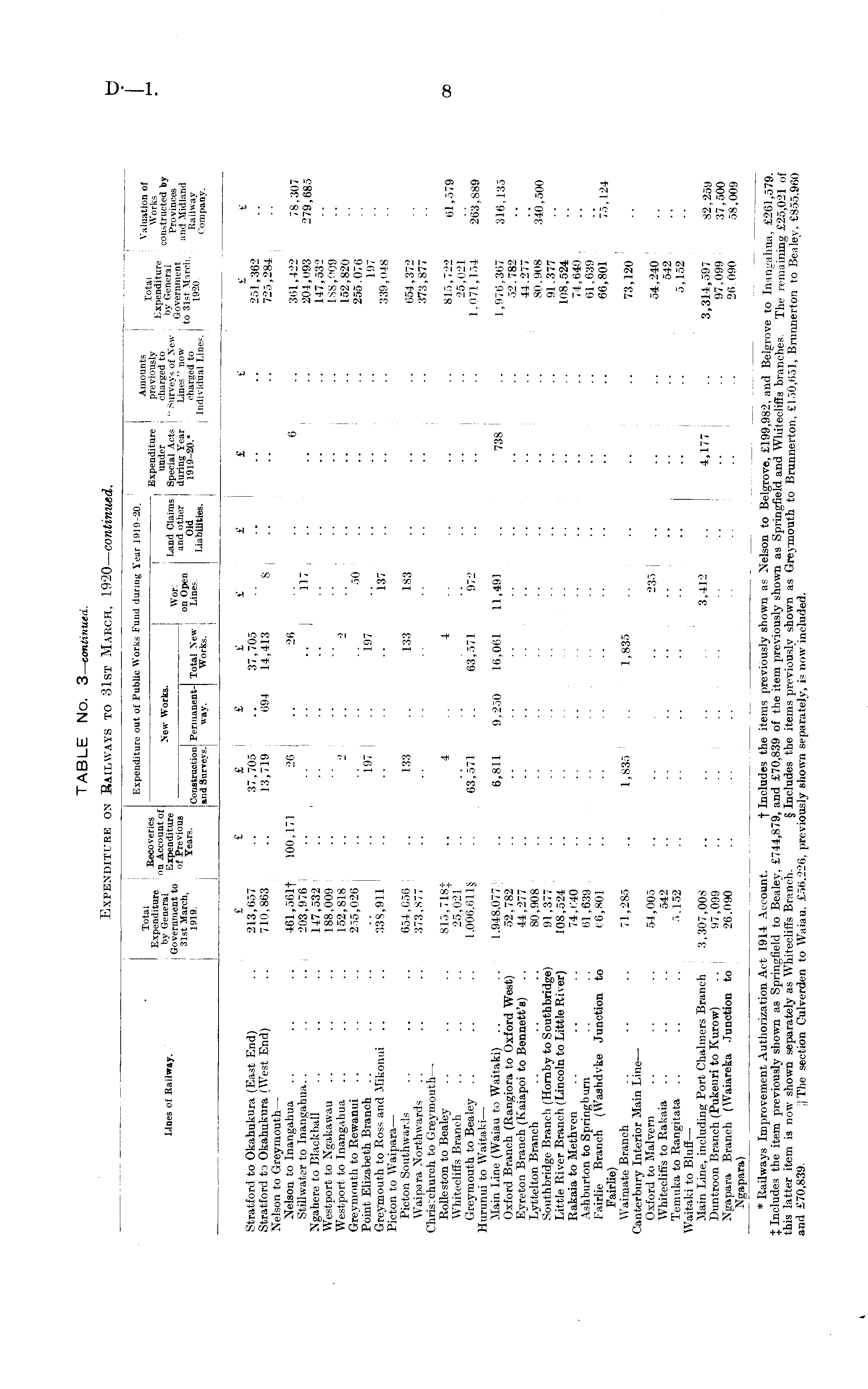 TABLE No. 3—continued. Expenditure on Railways to 31st March, 1920— continued.