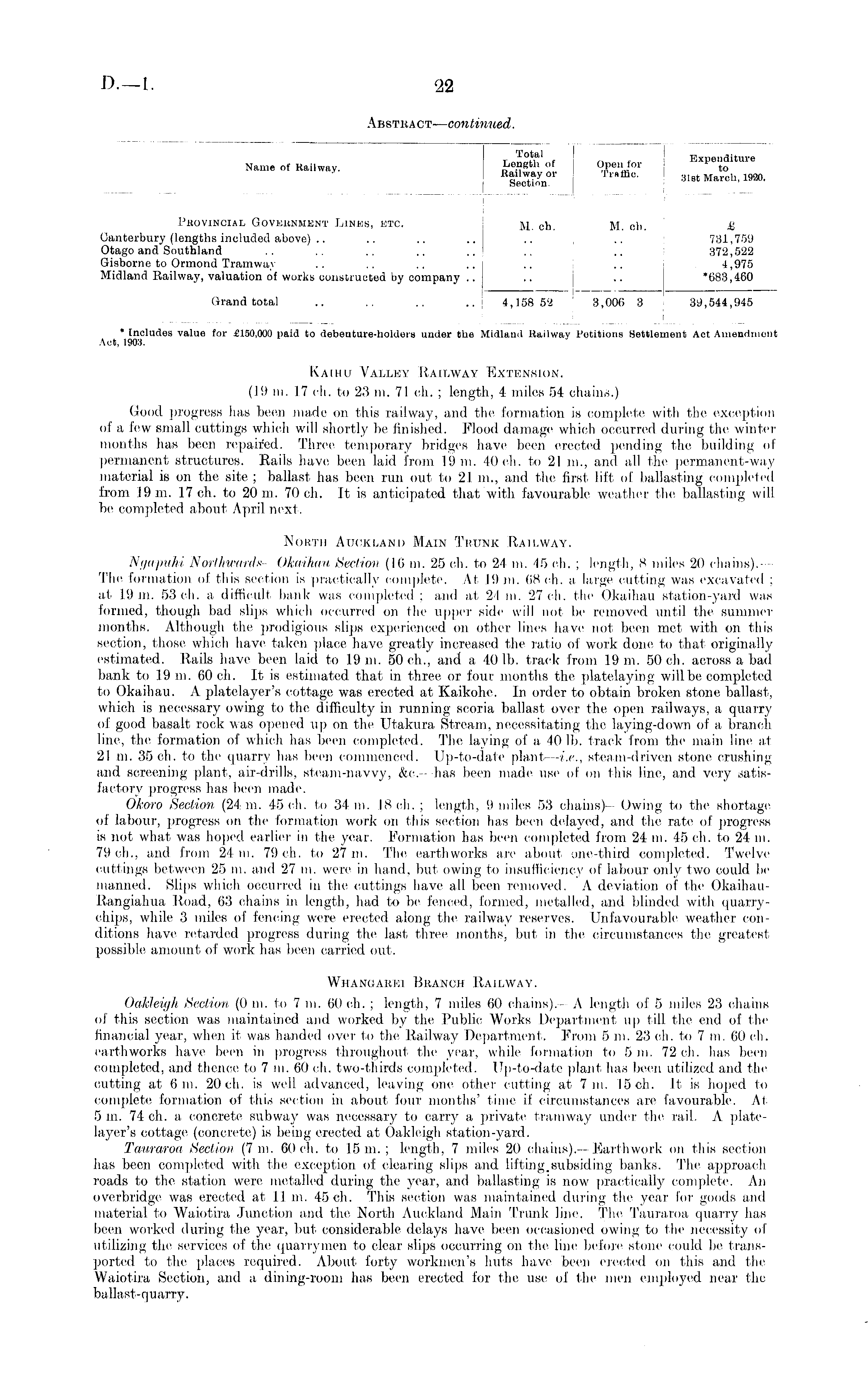 Name of Railway. Length' of Open for Expenditure Sec W Unn Or ■ 3Iet March, 1920. PROVINCIAL GOVKBNMENT LlNKS, ETC. JJ c fo JJ c ), £ (Janterbury (lengths included above) .. .. .. .. .. .. 731,759 Otago and Southland .. .. .. .. .. .. .. 372,522 Gisborne to Orrnond Tramway .. .. .. .. .. .. 4,975 Midland Kailway, valuation of works constructed by company .. .. .. *683,460 Grand total .. .. .. .. 4,158 52 3,006 3 39,544,945 I I • Includes value for £150,000 paid to debenture-holders under the Midland Kailway Petitions Settlement Act Amendment Act, 1903.