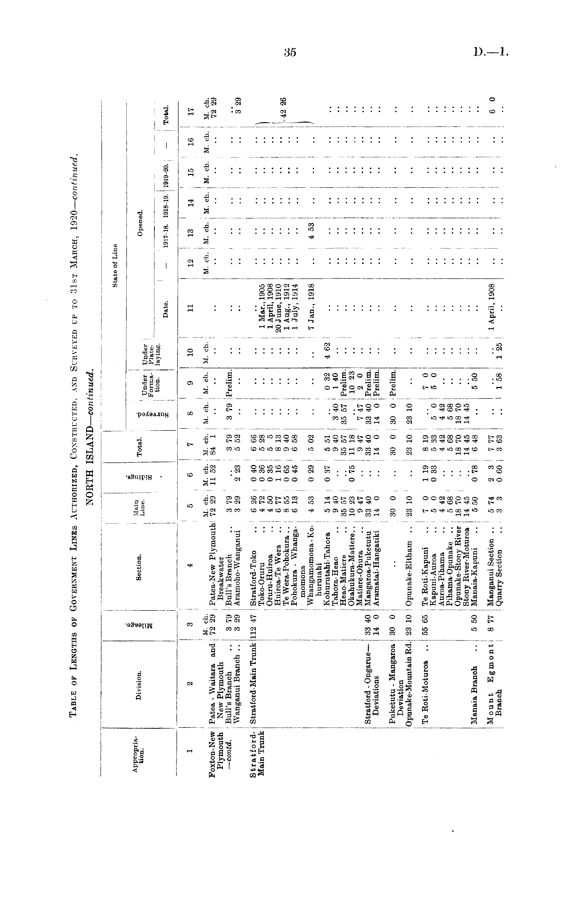 Table of Lengths of Government Lines Authorized, Constructed, and Surveyed up to 31st March, 1920— continued. NORTH ISLAND— continued.