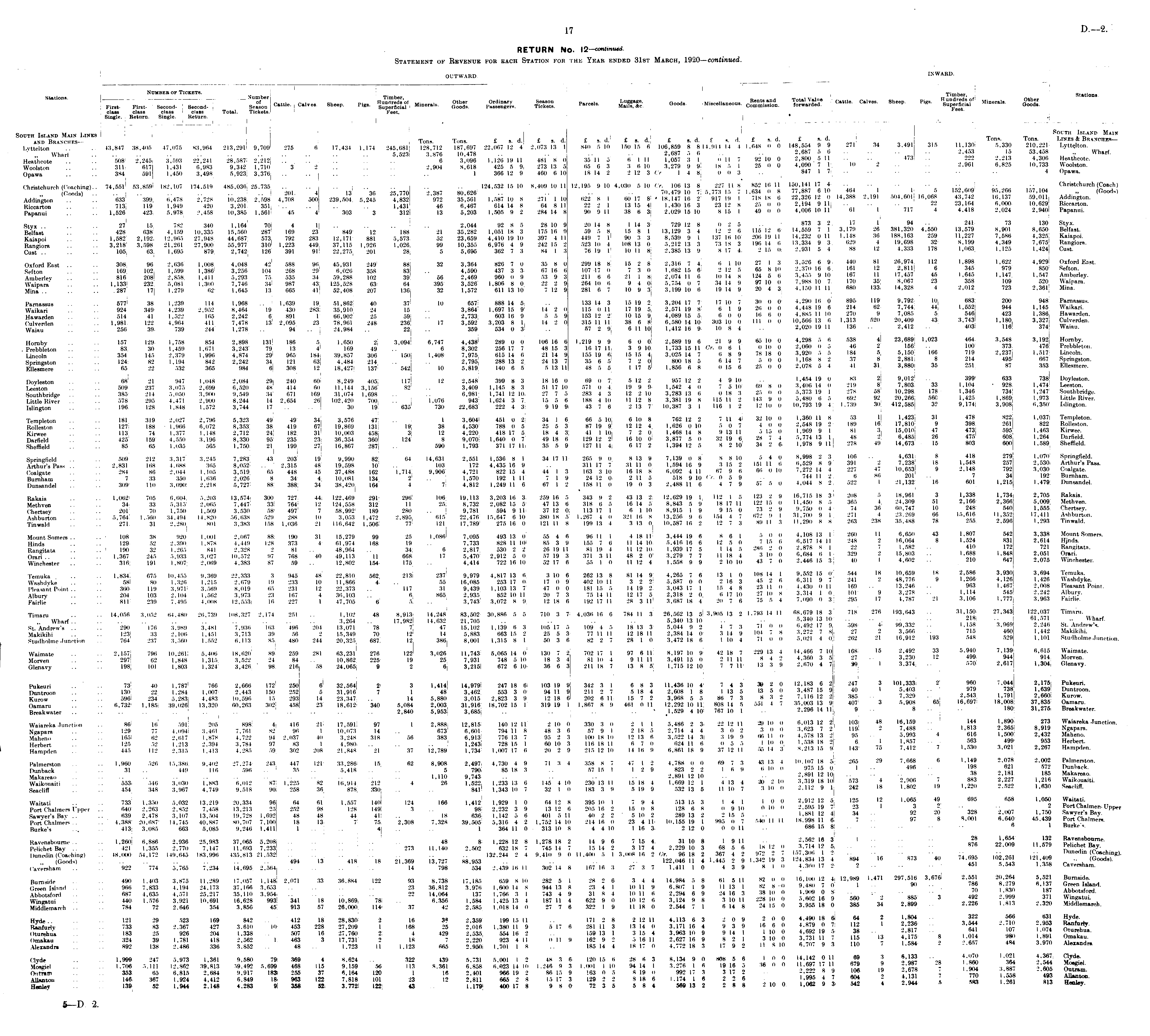 RETURN No. 12 —continued. Statement of Revenue for each Station for the Year ended 31st March, 1920—continued.
