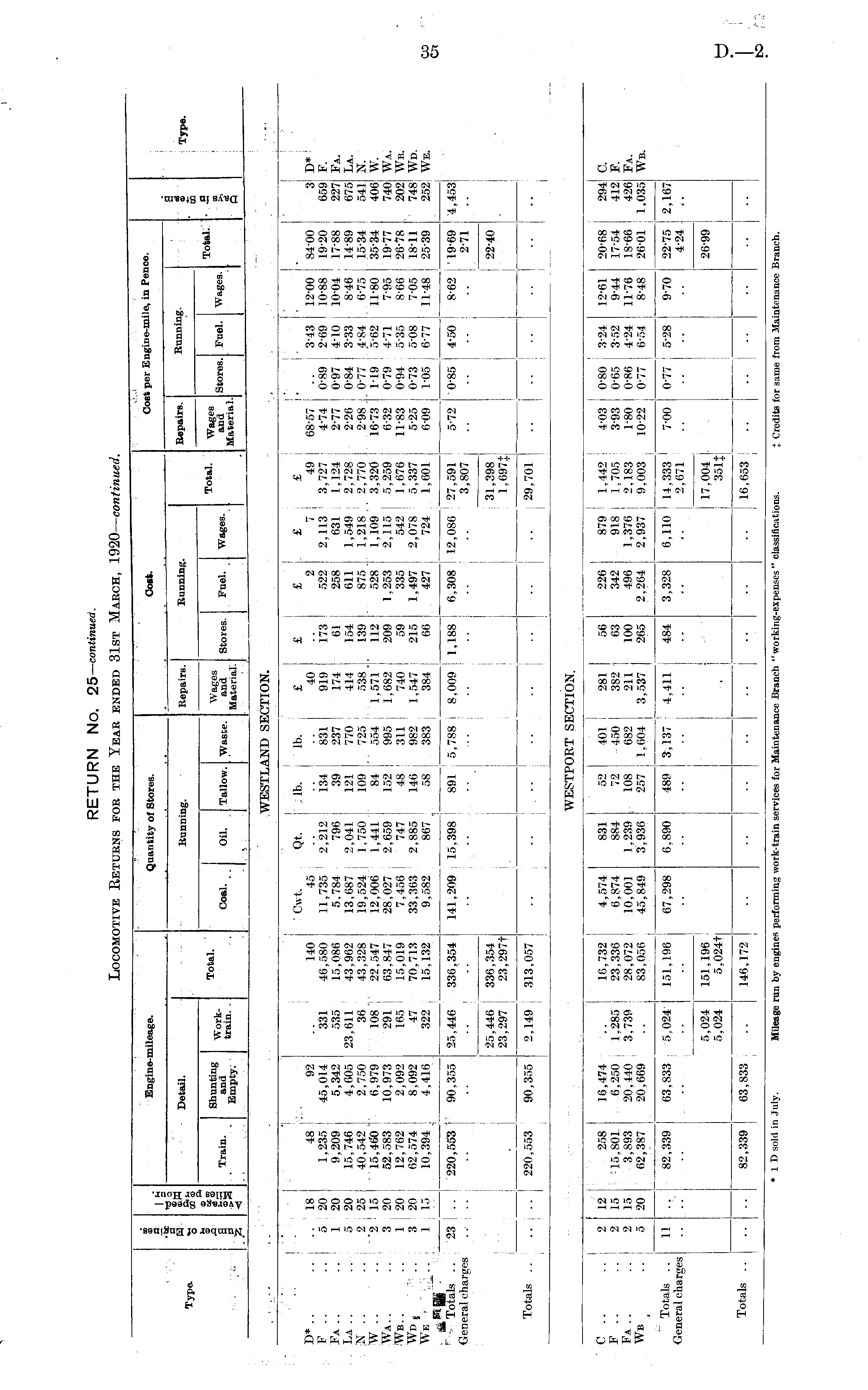 RETURN No. 25—continued. Locomotive Returns for the Year ended 31st March, 1920— continued.