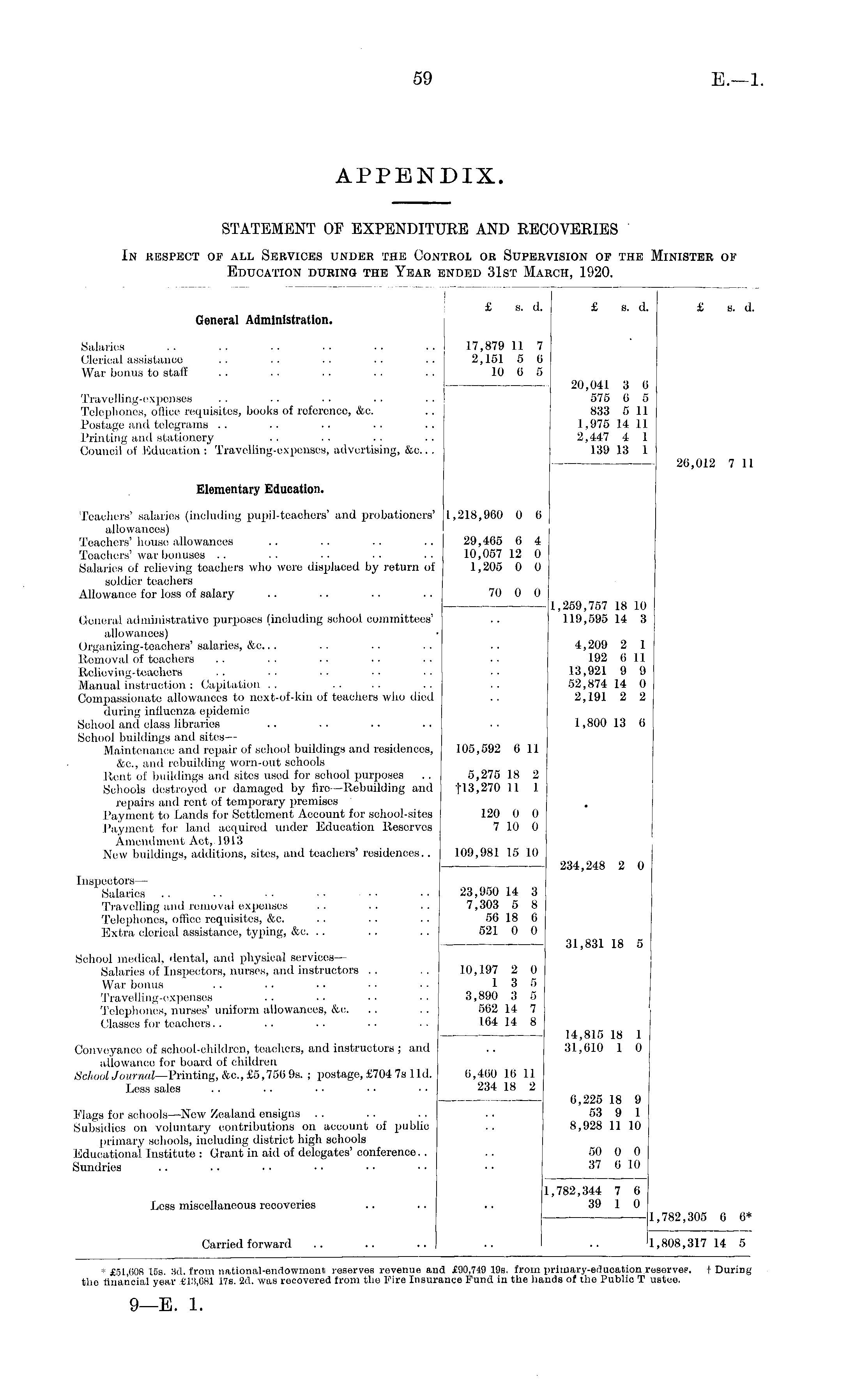 STATEMENT OF EXPENDITURE AND RECOVERIES In respect of all Services under the Control or Supervision of the Minister of Education during the Year ended 31st March, 1920.