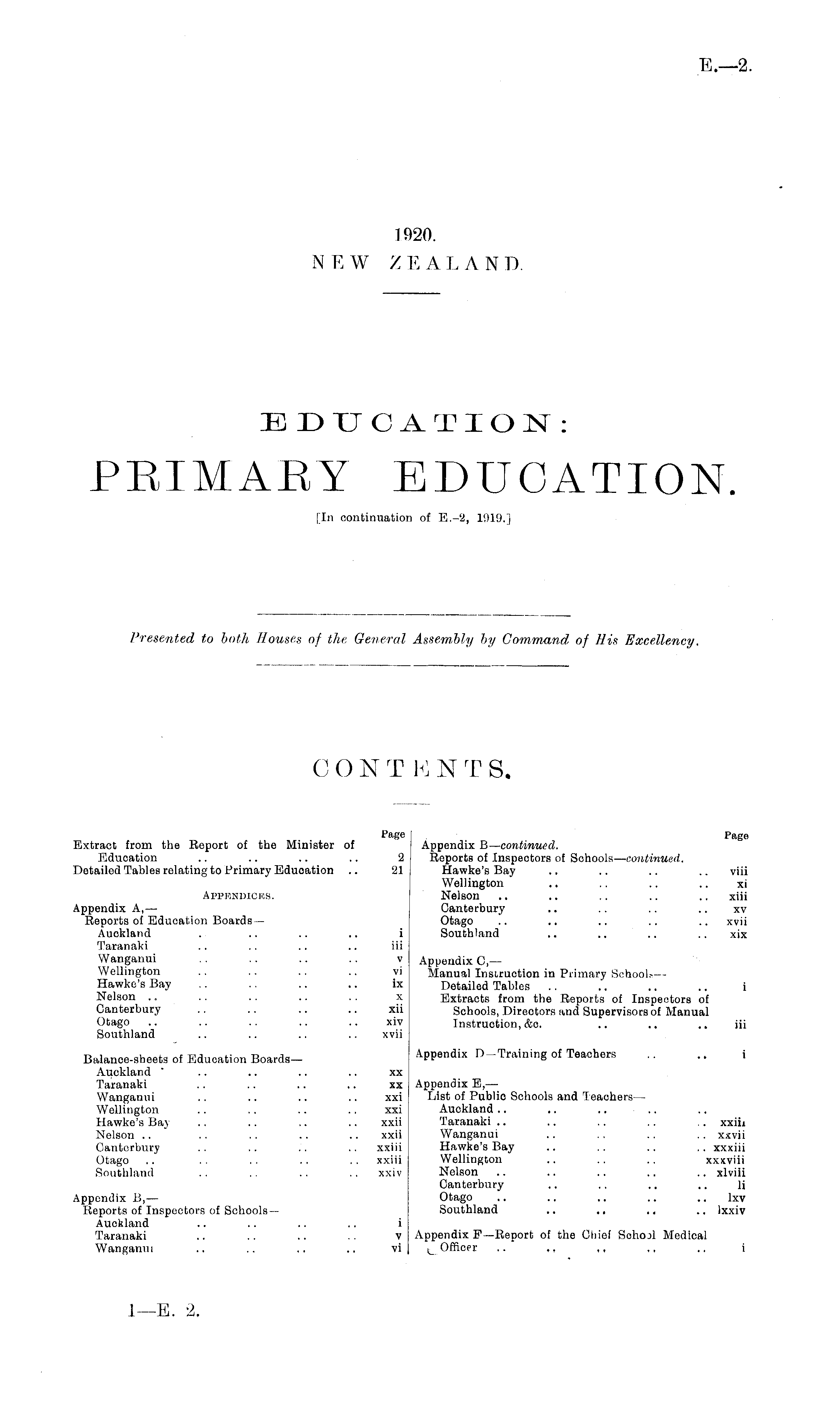EDUCATION: PRIMARY EDUCATION. [In continuation of E.-2, 1919.]
