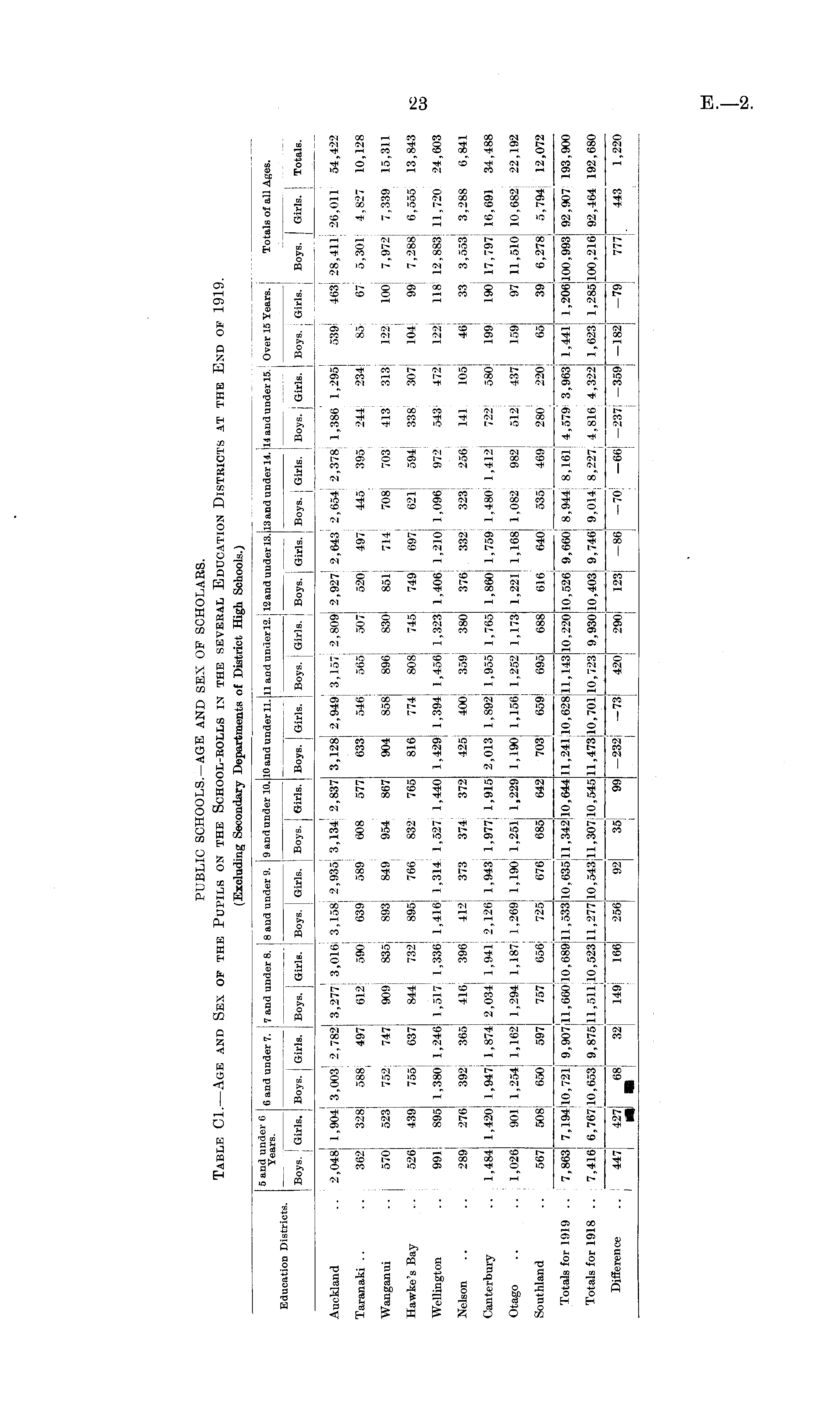 PUBLIC SCHOOLS.— AGE AND SEX OF SCHOLARS. Table C1.—Age and Sex of the Pupils on the School-rolls in the several Education Districts at the End of 1919.