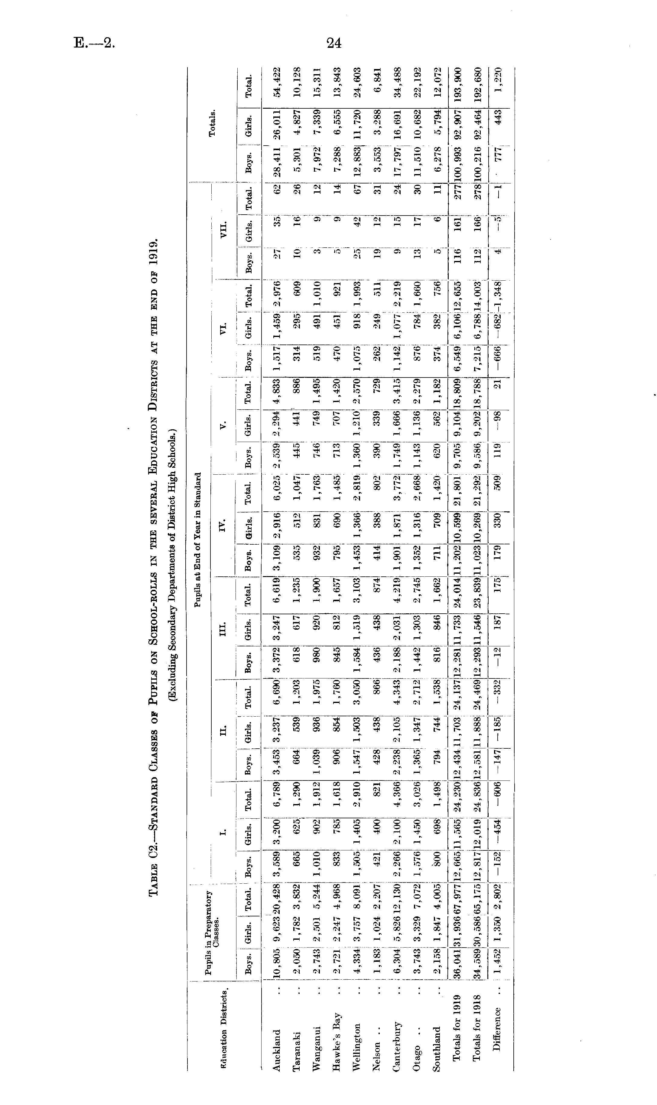 Table C2.—Standard Classes of Pupils on School-rolls in the several Education Districts at the end of 1919.