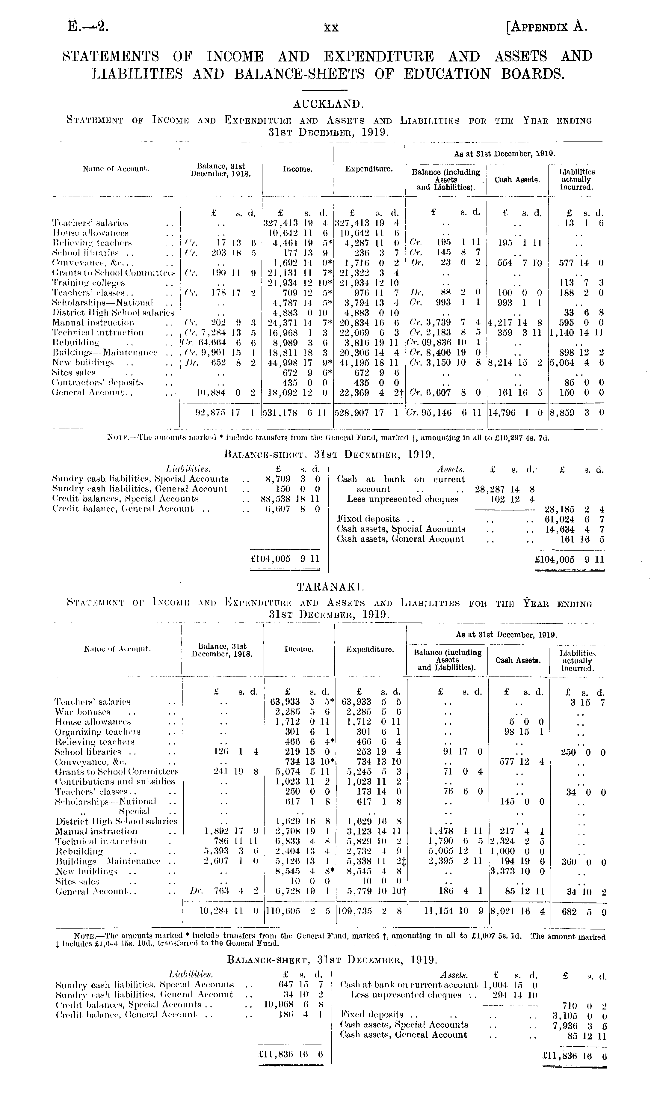 TARANAKI. Statement of Income and Expenditure and Assets and Liabilities for the Year ending 31st December, 1919.