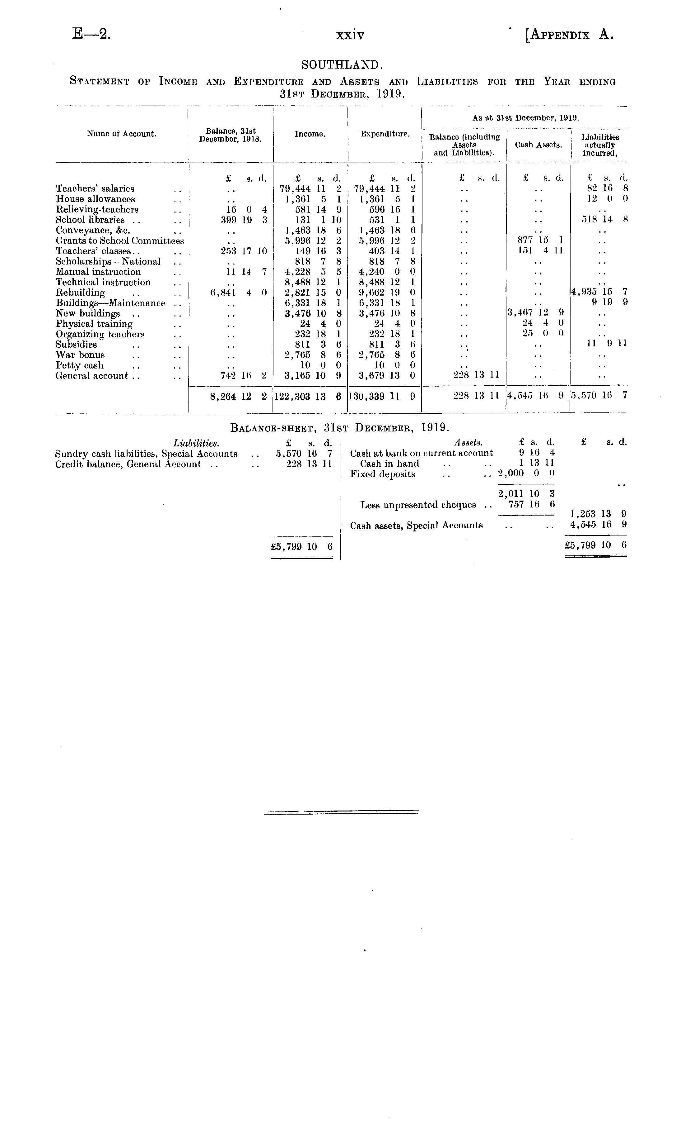 SOUTHLAND. Statement of Income and Expenditure and Assets and Liabilities for the Year ending 31st December, 1919.