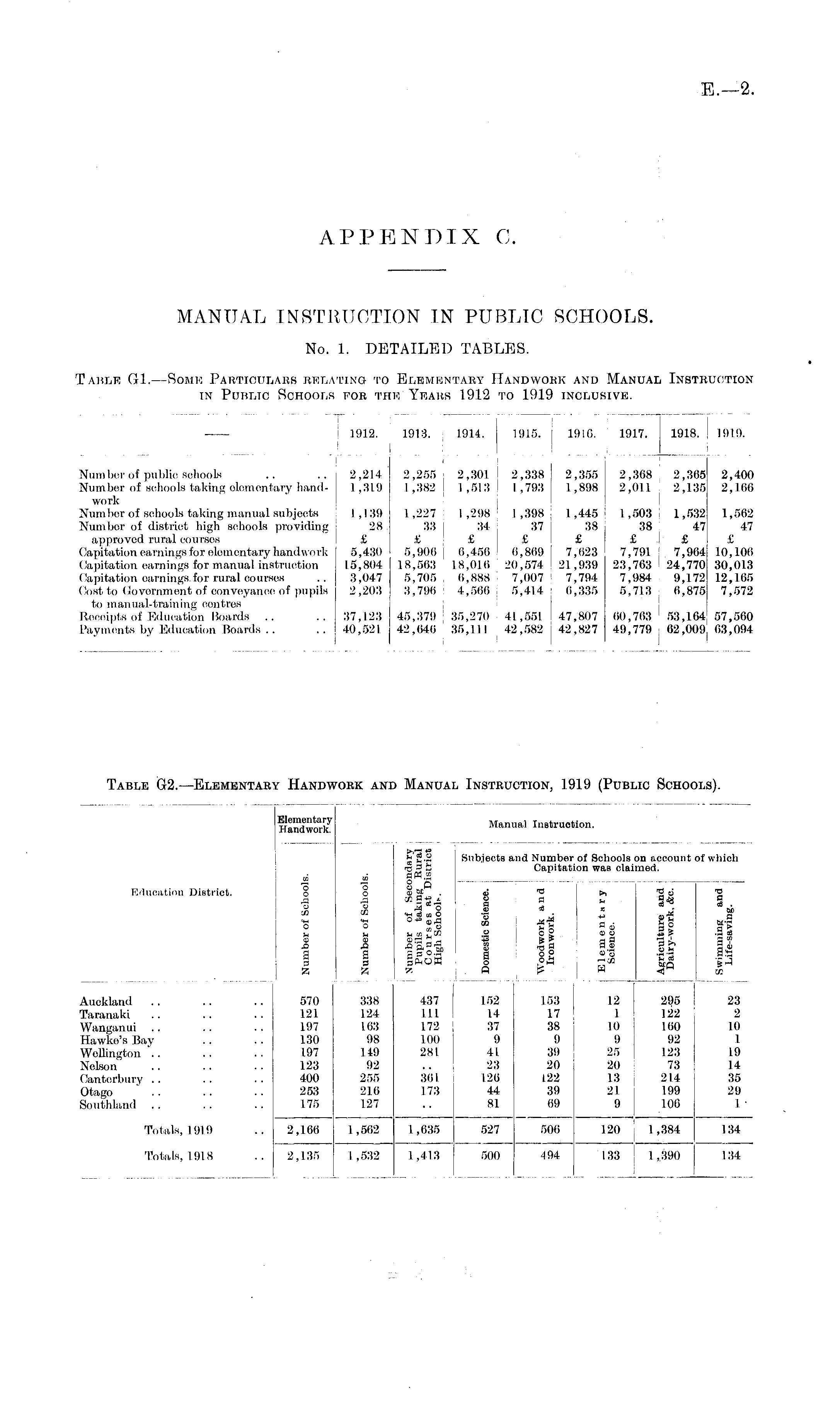 Table G1. —Some Particulars relating to Elementary Handwork and Manual Instruction in Public Schools for the Years 1912 to 1919 inclusive.