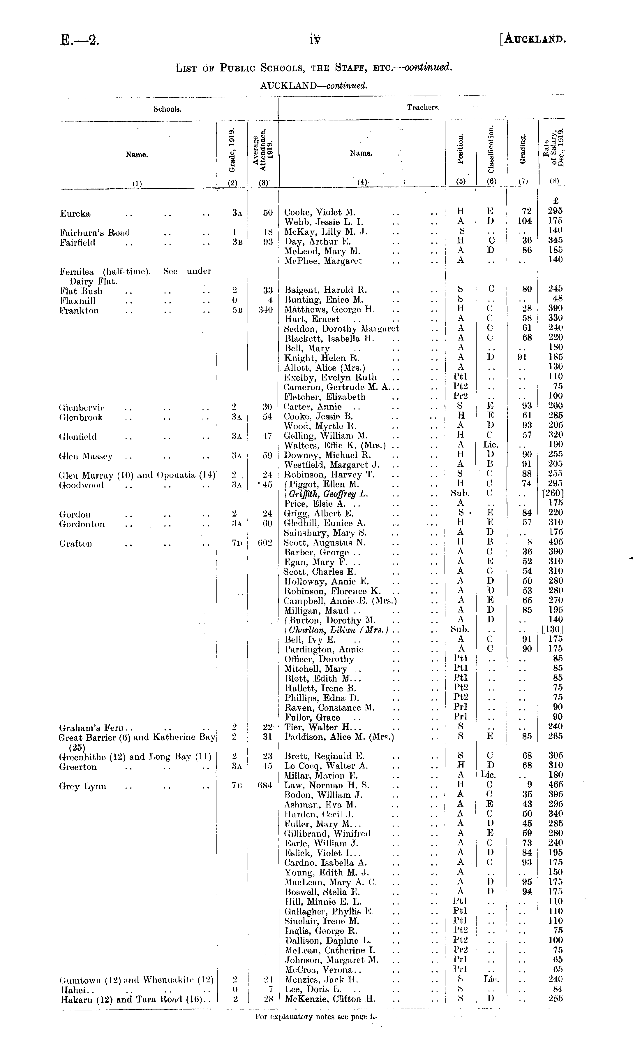 List of Public Schools, the Staff, etc. — continued. AUCKLAND — continued.