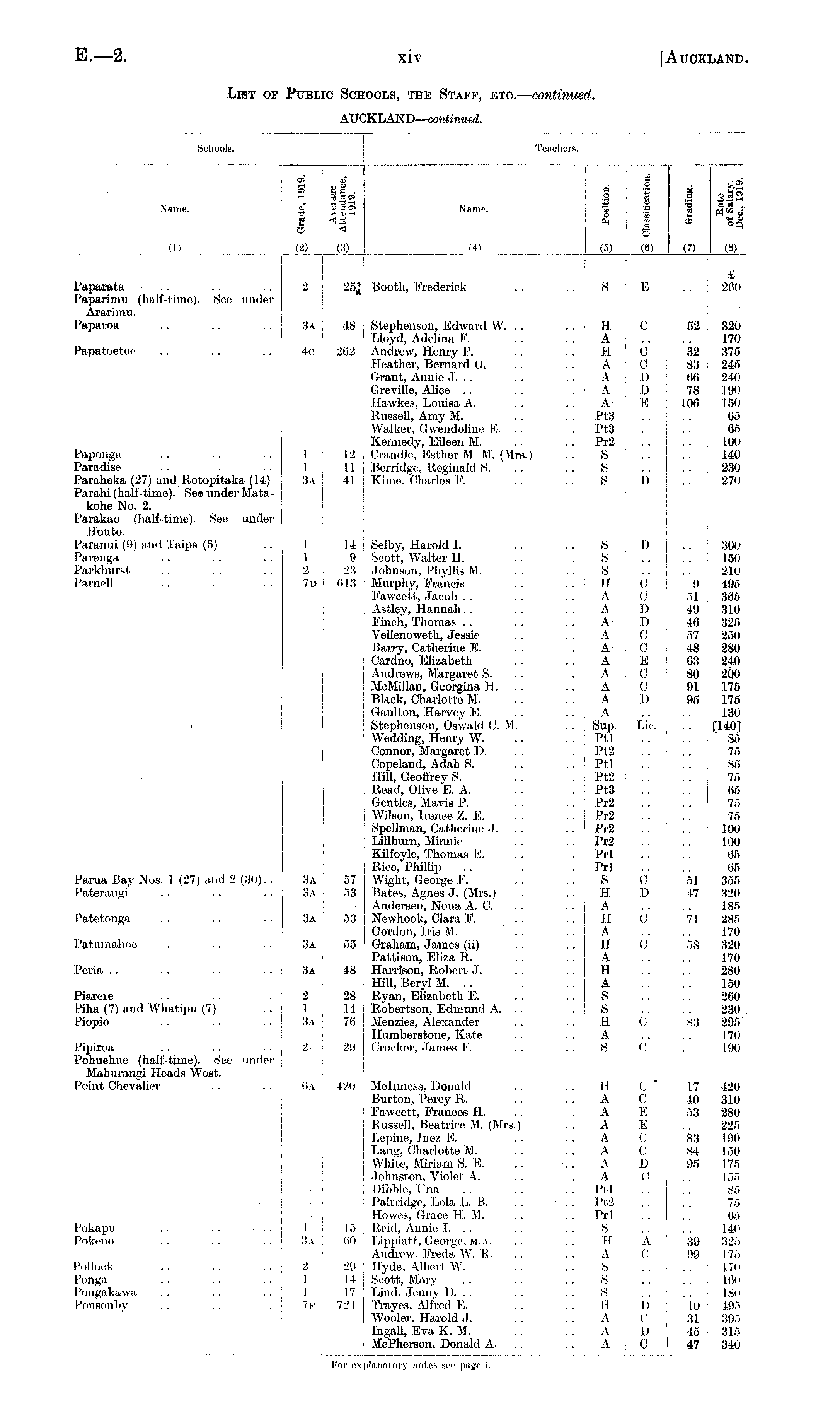 Schools. Name. Ten at oi 2 H3rc «._.___ . tr OA iH r% ' > § A, * UrilC. E Ot a o K J8) _ (4) j 2 25J Booth, Frederick Tciicliers. sellers. a fl i .2 IS 1 I «s 1 ej (5) (6) _ I j S E fl i 1 I & 1 ej (6) (6)_ ° Ua'l 2 8 -s| (7) («1_ M 'IS 2 (§ a, s i 8 0% 0) (8) I £ .. ; 260 (1) I Paparata Paparimu (half-time). See under Ararimu. Paparoa Papatoetoe 3a 48 Stephenson, Edward W. .. Lloyd, Adelina F. 4o 262 Andrew, Henry P. Heather, Bernard O. Grant, Annie J. .. Greville, Alice Hawkes, Louisa A. Russell, Amy M. Walker, Gwendoline E. .. Kennedy, Eileen M. I 12 Crandle, Esther M. M. (Mrs.) I 11 Borridge, Reginald S. 3a 41 Kime, Charles F. 7 .. , H C A .. H ' 0 A 0 .. I A D .. ! A D A E .. Pt3 .. j Pt3 .. I Pr2 ..iS s .. . S D 52 320 170 32 375 83 245 66 240 78 190 106 150 65 65 100 140 230 270 Paponga Paradise Paraheka (27) and Rotopitaka (14) Parahi (half-time). See under Matakohe No. 2. I'arakao (half-time). See under Houto. Paranui (9) and Taipa (5) Parenga Parkburst Parnell V Parua Bay Nos. 1 (27) and 2 (3(1). . Paterangi 1 14 Selby, Harold I. 1 9 Scott. Walter H. 2 23 Johnson, Phyllis M. 7d 613 Murphy, Francis Fawcett, Jacob Astley, Hannah Finch, Thomas Vellenoweth, Jessie Barry, Catherine E. Cardno. Elizabeth Andrews, Margaret S. McMillan, Georgina H. . . Black, Charlotte M. Gaulton, Harvey E. Stephenson, Oswald 0. M. Wedding, Henry W. Connor, Margaret D. Copeland, Adah S. Hill, Geoffrey S. Read, Olive E. A. Gentles, Mavis P. Wilson, Irenee Z. E. Spellman, Catherine J. Lillburn, Minnie Kilfoyle, Thomas E. Rice, Phillip 3a 57 Wight, George F. 3a 53 Bates, Agnes J. (Mrs.) Andersen, Nona A. C. 3a 53 Newhook, Clara F. Gordon, Iris M. 3a 55 Graham, James (ii) Pattison, Eliza It. 3a 48 Harrison, Robert J. Hill, Beryl M. .. 2 28 j Ryan, Elizabeth E. 1 14 Robertson, Edmund A. . . 3a 76 Menzies, Alexander Humberstone, Kate 2 29 Crocker, James F. .. ! s d . s .. H C ..A C A D ... A D A C AC A E A 0 A C ..A D .., A .. 1 Sup. '< Lie. .. Ptl .. Pt2 .. .. Ptl .. .. Pt2 I .. .. Pt3 .. ... Pr2 .. Pr2 I" ".. Pr2 - , .. .. Pr2 ..Prl .. .. ' Prl .. '< S C H D ..A H C A H : C A : .. H .. A S S H j c A s c 300 150 210 9 495 51 365 49 310 46 325 57 250 48 ! 280 63 240 80 ! 200 91 175 95 ! 175 130 ■• [WO] 85 75 85 75 65 75 75 100 100 65 65 51 '355 47 320 .. , 185 71 285 170 58 320 170 280 150 260 .. | 230 83 : 295 170 190 Patetonga Patumahoe Peria Piarere Piha (7) and Whatipu (7) Piopio Pipiroa Pohuehue (half-time). See under Mahurangi Heads West. Point Chevalier 6a 420 Mclnness, Donald Burton, Percy R. Fawcett, Frances H. Russell, Beatrice M. (Mrs.) Lepine, Inez E. Lang, Charlotte M. White, Miriam S. E. Johnston, Violet A. Dibble, Una Paltridge, Lola L 15. Howes, Grace H. M. 1 15 Reid, Annie I. . , 3a (id brppiatt, George, m.a. Andrew. Freda W. R. 2 29 Hyde, Albert W. 1 1.4 i Scott, Marv I 17 Und, Jenny D. . . 7f 724 Trayes, Alfred E. Wooler, Harold J. Ingall, Eva K. M. MePherson, Donald A. For explanatory notes see page i. .. 11. c • ..A C ..A E .. A E A 0 A C A D A C .. Ptl . . Pt2 i .. .. Prl ! .. S H A ! A (' s s s II I) A C A D .. I A I C I 17 420 40 310 53 : 280 225 83 190 84 150 95 175 I 85 75 65 14(1 39 325 99 175 1711 Kid 18(1 10 195 31 395 45 315 47 340 Pokapu .. .. Pokenn Pollock Ponga Pongakawa Ponsonby