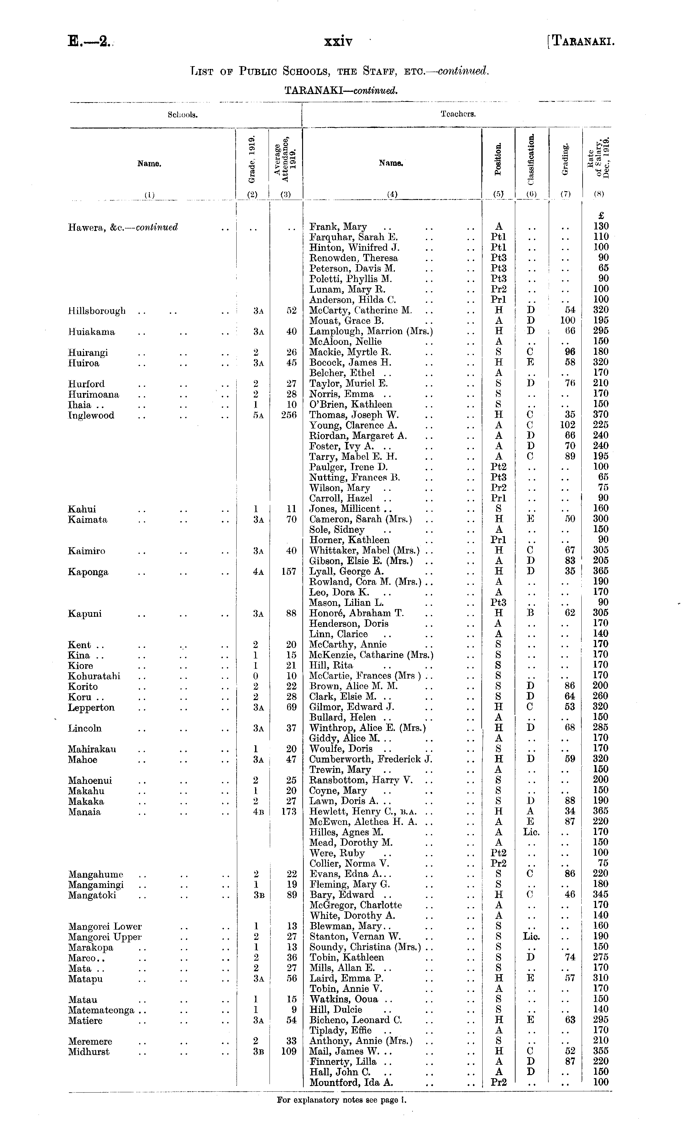 List of Public Schools, the Staff, etc. — continued. TARANAKI— continued.