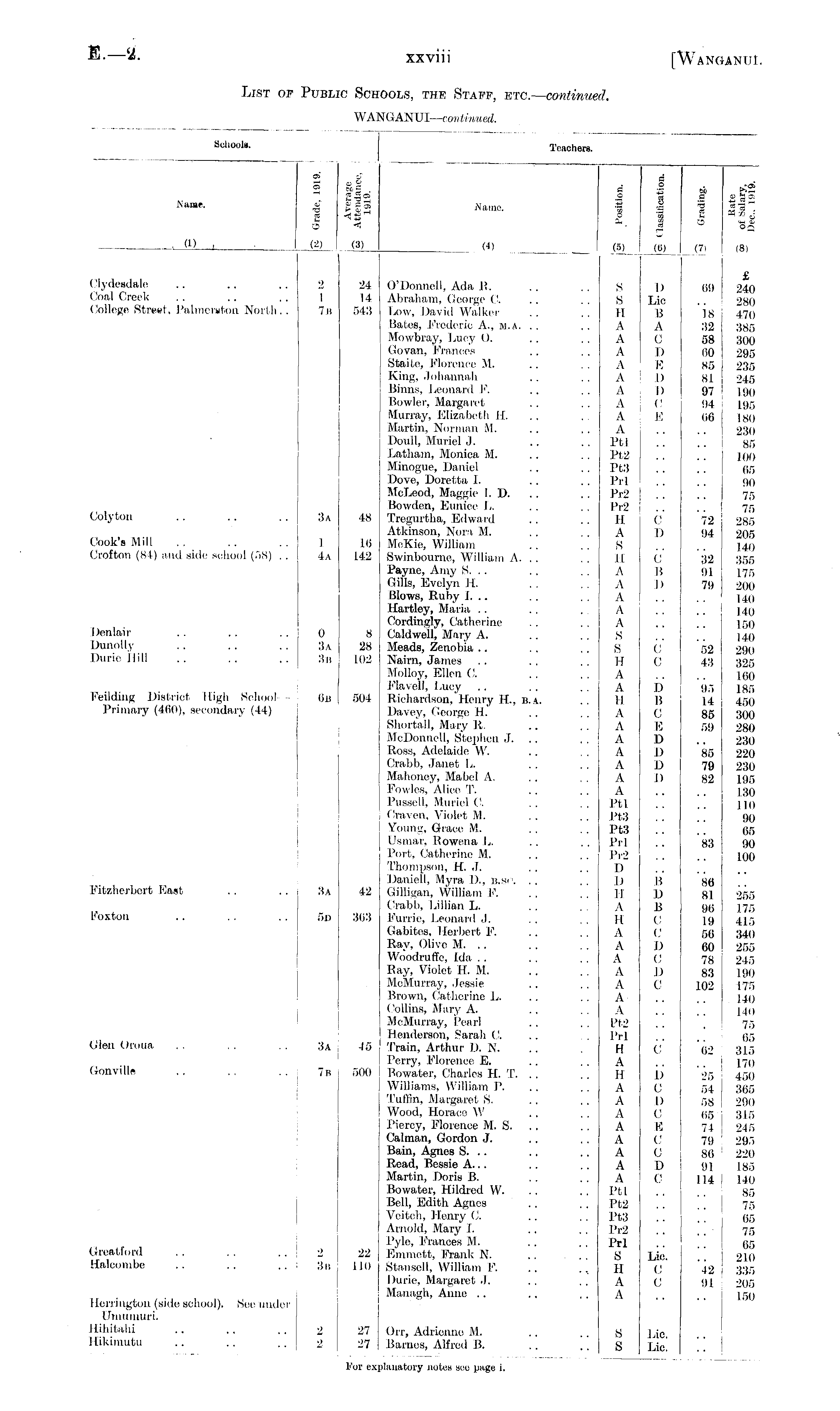 List of Public Schools, the Staff, etc. — continued. WANGANUI— continued.