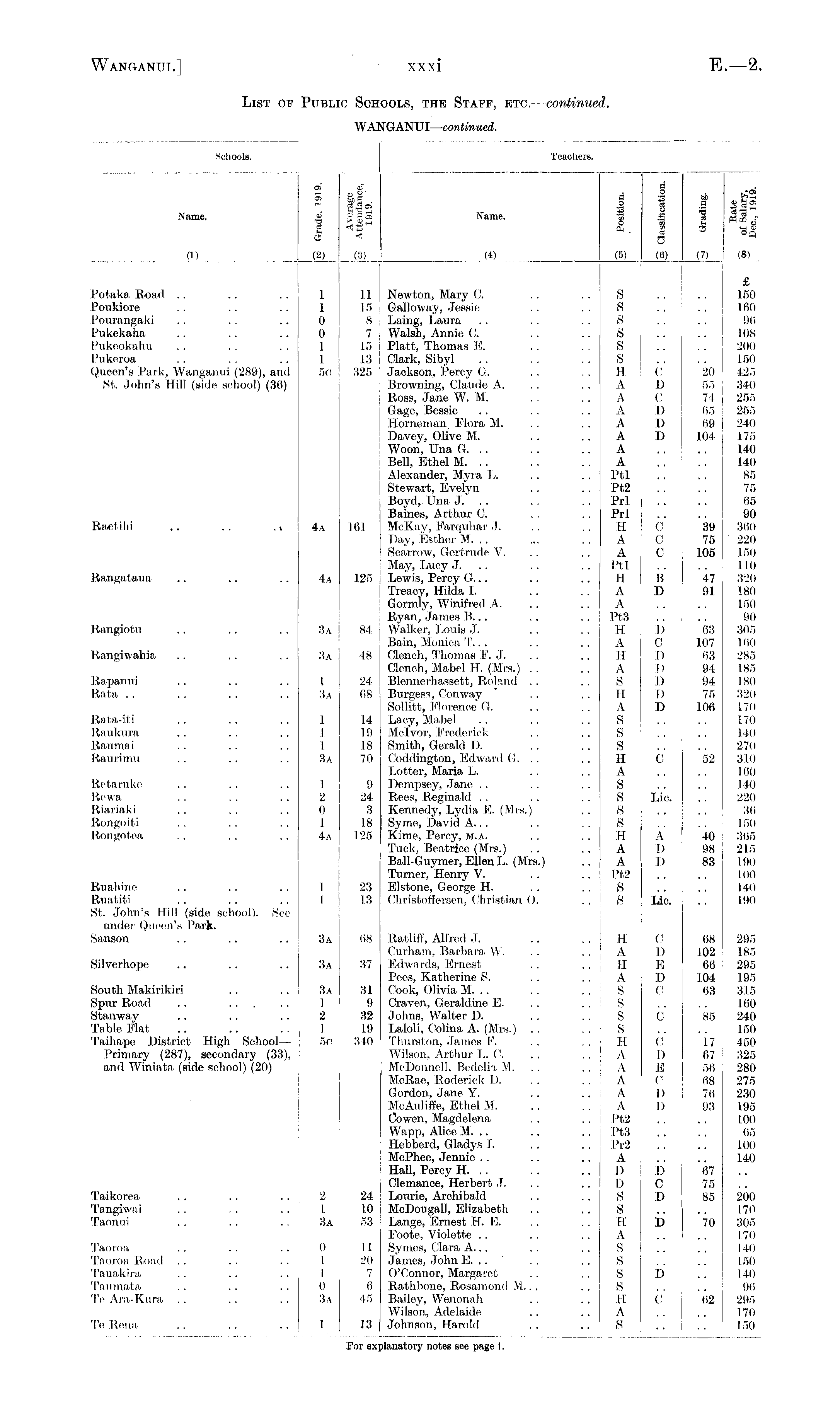 List of Public Schools, the Staff, etc.— continued. WANGANUI— continued.