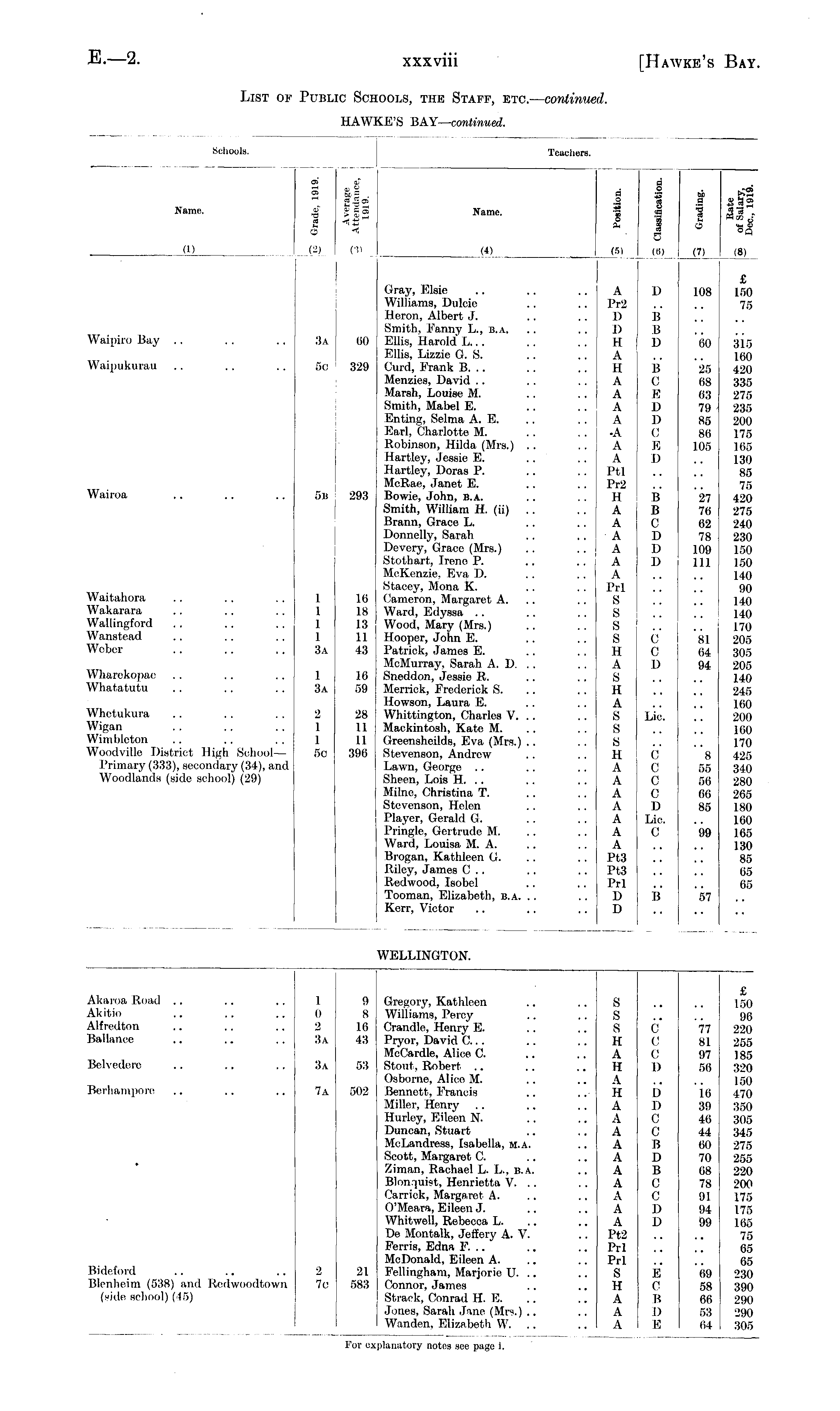 List of Public Schools, the Staff, etc. — continued. HAWKE'S BAY— continued.