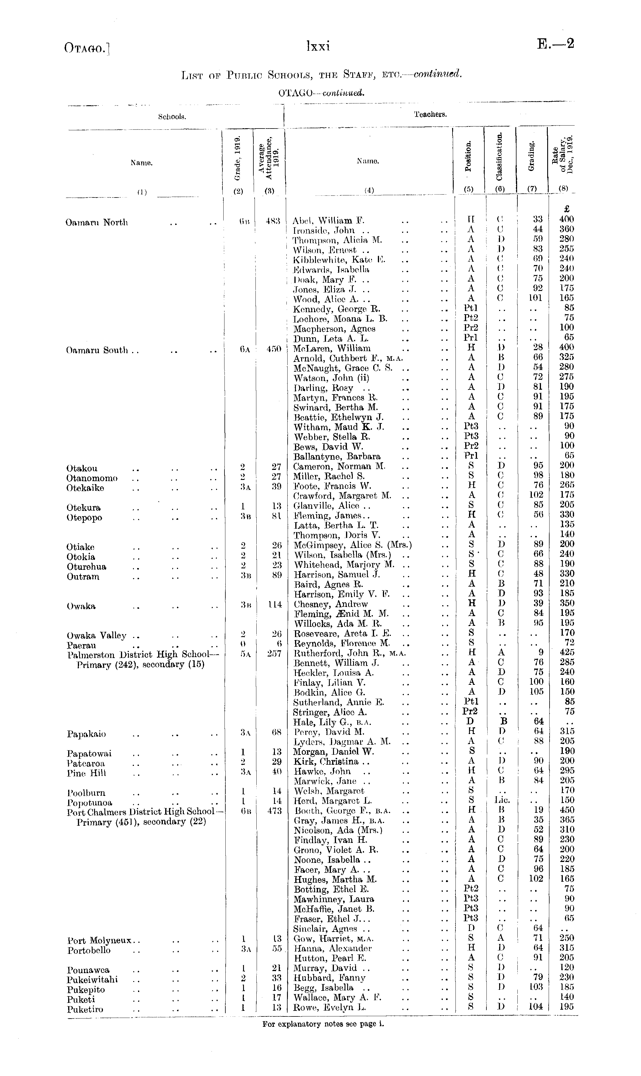 List of Public Schools, the Staff, etc.— continued. OTAGO— continued.