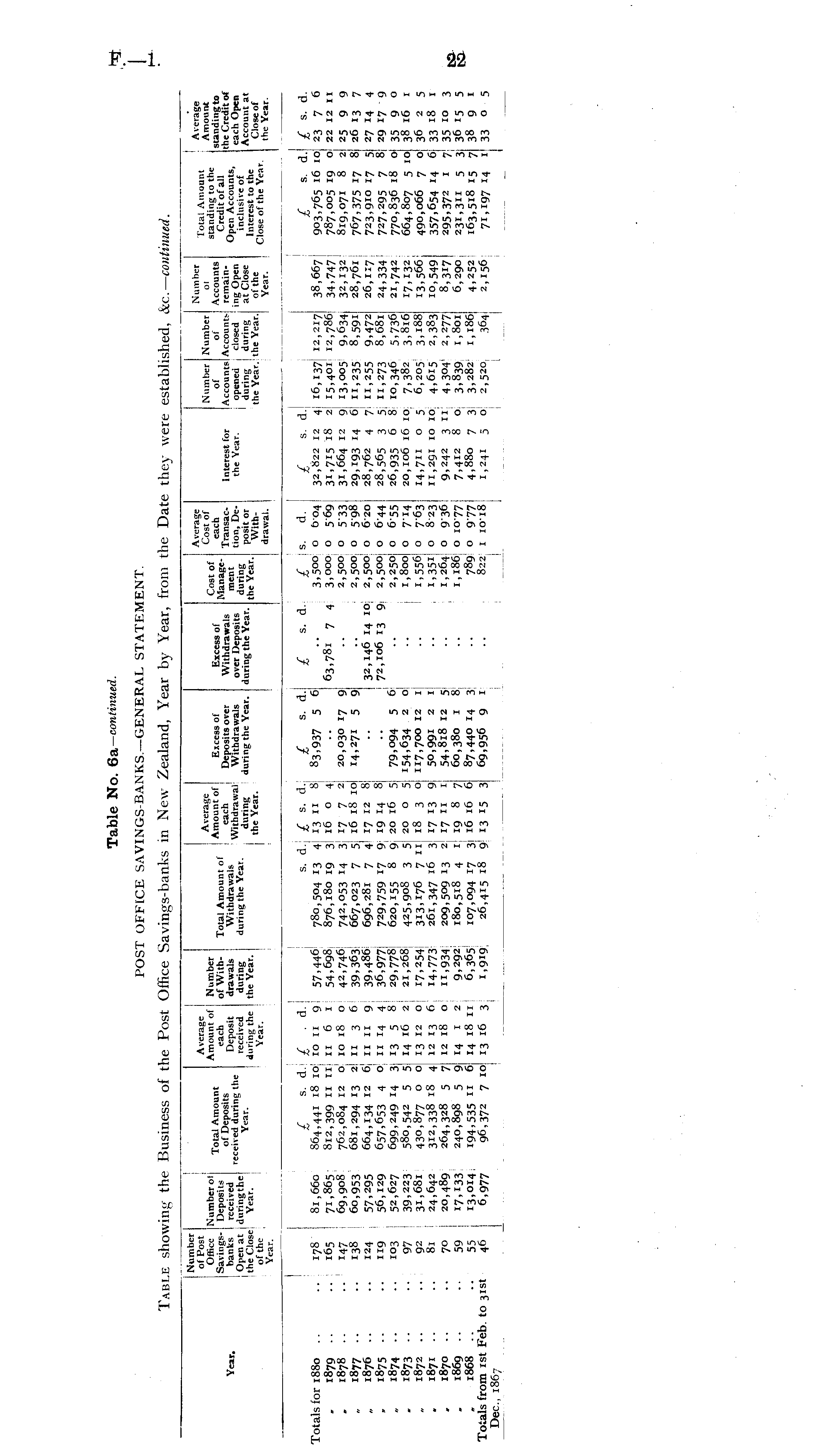 Table No. 6a— continued. POST OFFICE SAVINGS-BANKS— GENERAL STATEMENT. Table showing the Business of the Post Office Savings-banks in New Zealand, Year by Year, from the Date they were established, &c. — continued.