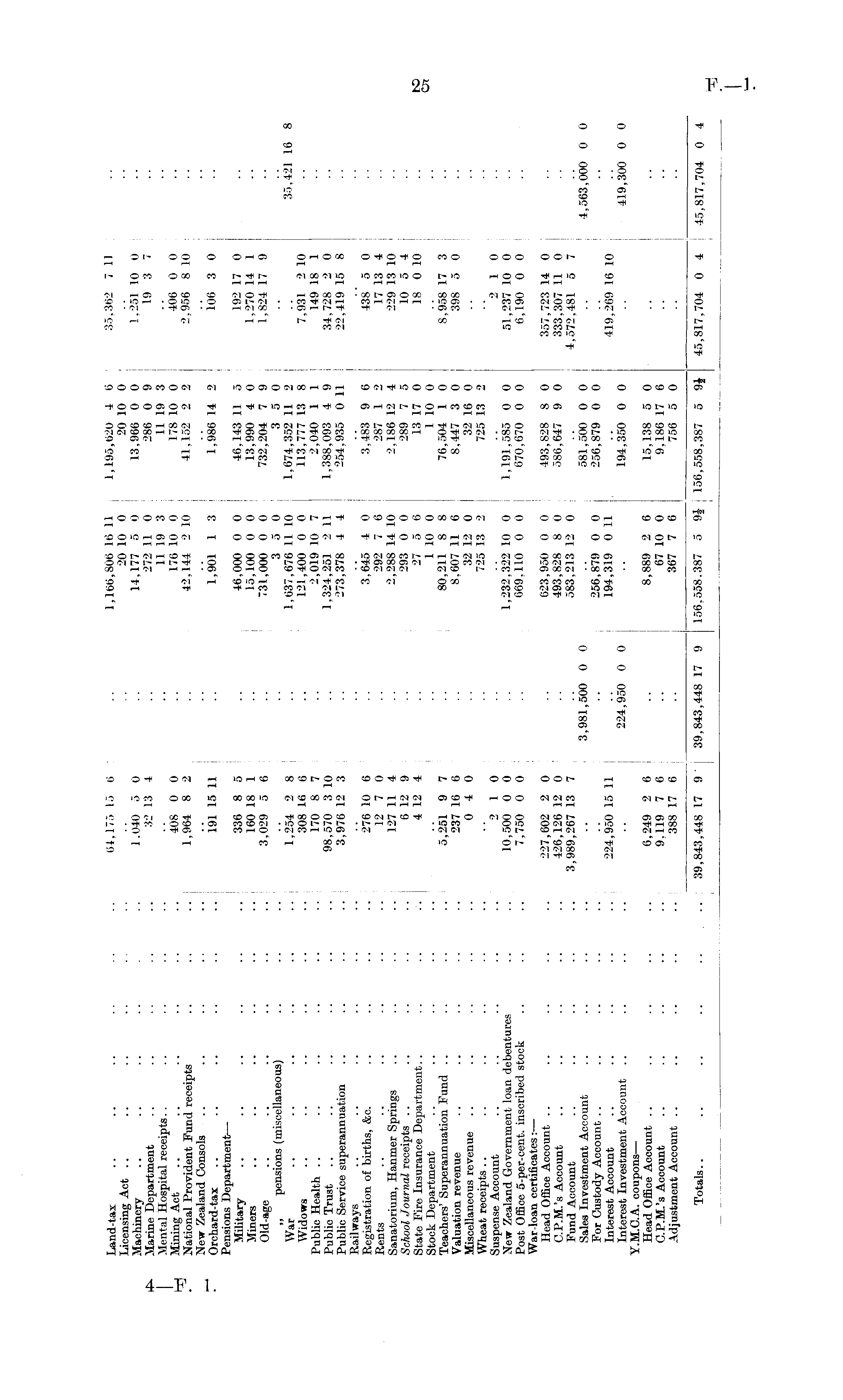 Land-tax Licensing Act Machinery Marine Department Mental Hospital receipts Mining Act National Provident Fund receipts New Zealand Consols Orchard-tax Pensions Department — Military Miners Old-age „ pensions (miscellaneous) War Widows Public Health Public Trust Public Service superannuation Railways Registration of births, &c. Rents Sanatorium, Hanmer Springs School Journal receipts State Fire Insurance Department Stock Department Teachers' Superannuation Fund Valuation revenue Miscellaneous revenue Wheat receipts Suspense Account New Zealand Government loan debentures Post Office 5-per-cent. inscribed stock War-loan certificates: — Head Office Account .. C.P.M.'s Account Fund Account Sales Investment Account For Custody Account Interest Account Interest Investment Account Y.M.C.A. coupons — Head Office Account .. C.P.M.'s Account Adjustment Account 64,175 16 6 1,040 5 0 32 13 4 408 0 0 1,964 8 2 i91 15 11 336 8 5 160 18 1 3,029 5 6 1,254 2 8 308 16 6 170 8 7 98,570 3 10 3,976 12 3 276 10 6 12 7 0 127 11 4 6 12 9 4 12 4 5,251 9 7 237 16 6 0 4 0 "2 10 10,500 0 0 7,750 0 0 227,602 2 0 426,126 12 0 3,989,267 13 7 3,981,500 0 0 224,950 15 11 224,950 0 0 6,249 2 6 9.119 7 6 388 17 6 1,166,806 16 11 20 10 0 14,177 5 0 272 11 0 11 19 3 176 10 0 42,144 2 10 1,901 1 3 46,000 0 0 15,100 0 0 731,000 0 0 3 5 0 1,637,676 11 10 121,400 0 0 2,019 10 7 1.324,251 2 11 273,378 4 4 3.645 4 0 292 7 6 2,288 14 10 293 0 0 27 5 6 1 10 0 80,211 8 8 8,607 11 6 32 12 0 725 13 2 1,232,322 10 0 669,110 0 0 623,950 0 0 493,828 8 0 583,213 12 0 256,879 0 0 194,319 0 11 8,889 2 6 67 10 0 367 7 6 1,195,620 4 6 20 10 0 13,966 0 0 286 0 9 11 19 3 178 10 0 41,152 2 2 1,986 14 2 46,143 11 5 13,990 4 0 732,204 7 9 3 5 0 1,674,352 11 2 113,777 13 8 2,040 1 1 1,388,093 4 9 254,935 0 11 3.483 9 6 287 1 2 2,186 12 4 289 7 5 13 17 0 1 10 0 76,504 1 0 8.447 3 0 32 16 0 725 13 2 1,191,585 0 0 670,670 0 0 493,828 8 0 586,647 9 0 581,500 0 0 256,879 0 0 194,350 0 0 15,138 5 0 9.186 17 6 756 5 0 35,362 7 11 1.251 10 0 19 3 7 406 0 0 2,956 8 10 106 3 0 192 17 0 1,270 14 1 1,824 17 9 7,931 2 10 149 18 1 34,728 2 0 22,419 15 8 438 5 0 17 13 4 229 13 10 10 5 4 18 0 10 8,958 17 3 398 5 0 2 1 0 51,237 10 0 6,190 0 0 357,723 14 0 333,307 11 0 4,572,481 5 7 419,269 16 10 35,421 16 4,563,000 0 419,300 0 Totals ' " I39,843,448 17 9 39,843,448 17 9 1 156,558.387 156,558.387 5 9$ 5 9J 156,558,387 1. 156,558,387 5 9J 5 9J 45,817,704 0 4 45,817,704 0 4 45,817,704 0 45,817,704 0 I !