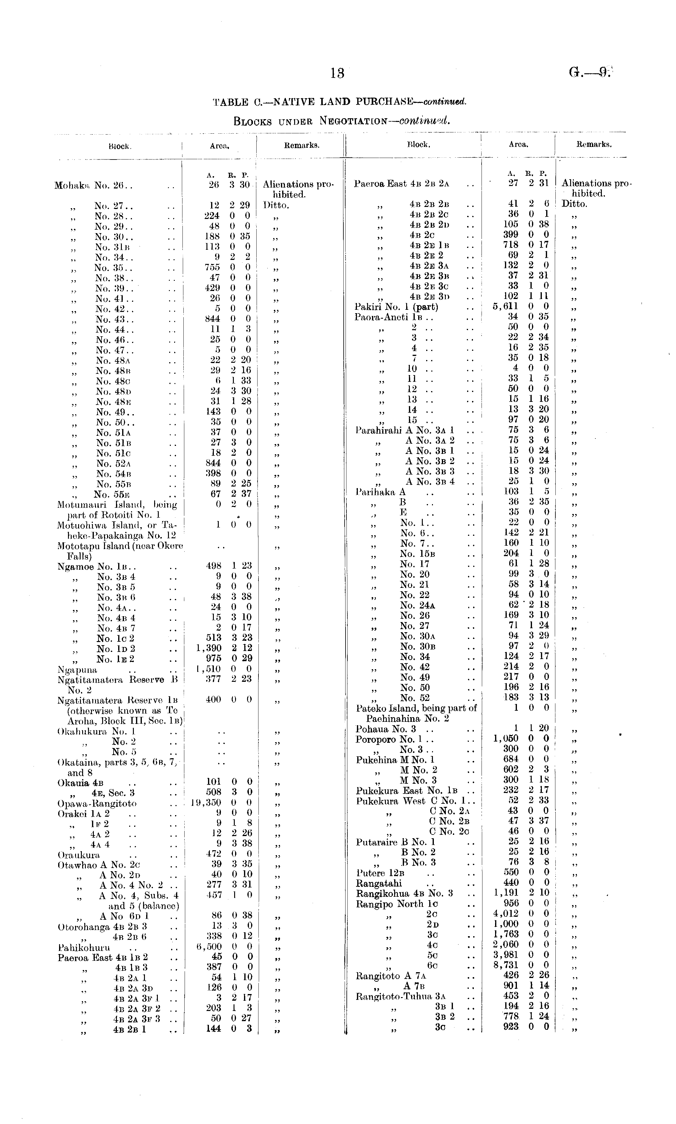 TABLE C.—NATIVE LAND PURCHASE— continued. Blocks under Negotiation—continued.