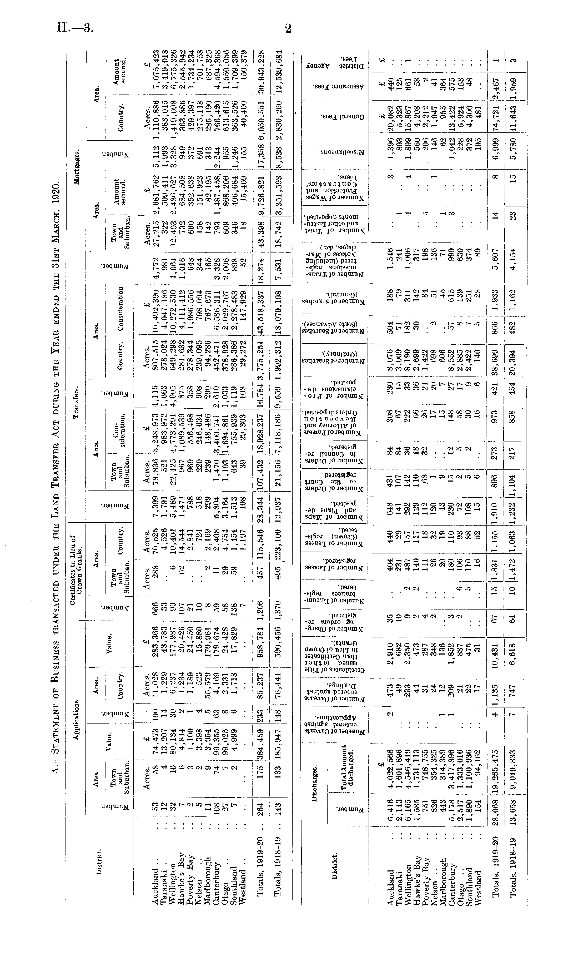 A.—Statement of Business transacted under the Land Transfer Act during the Year ended the 31st March, 1920.