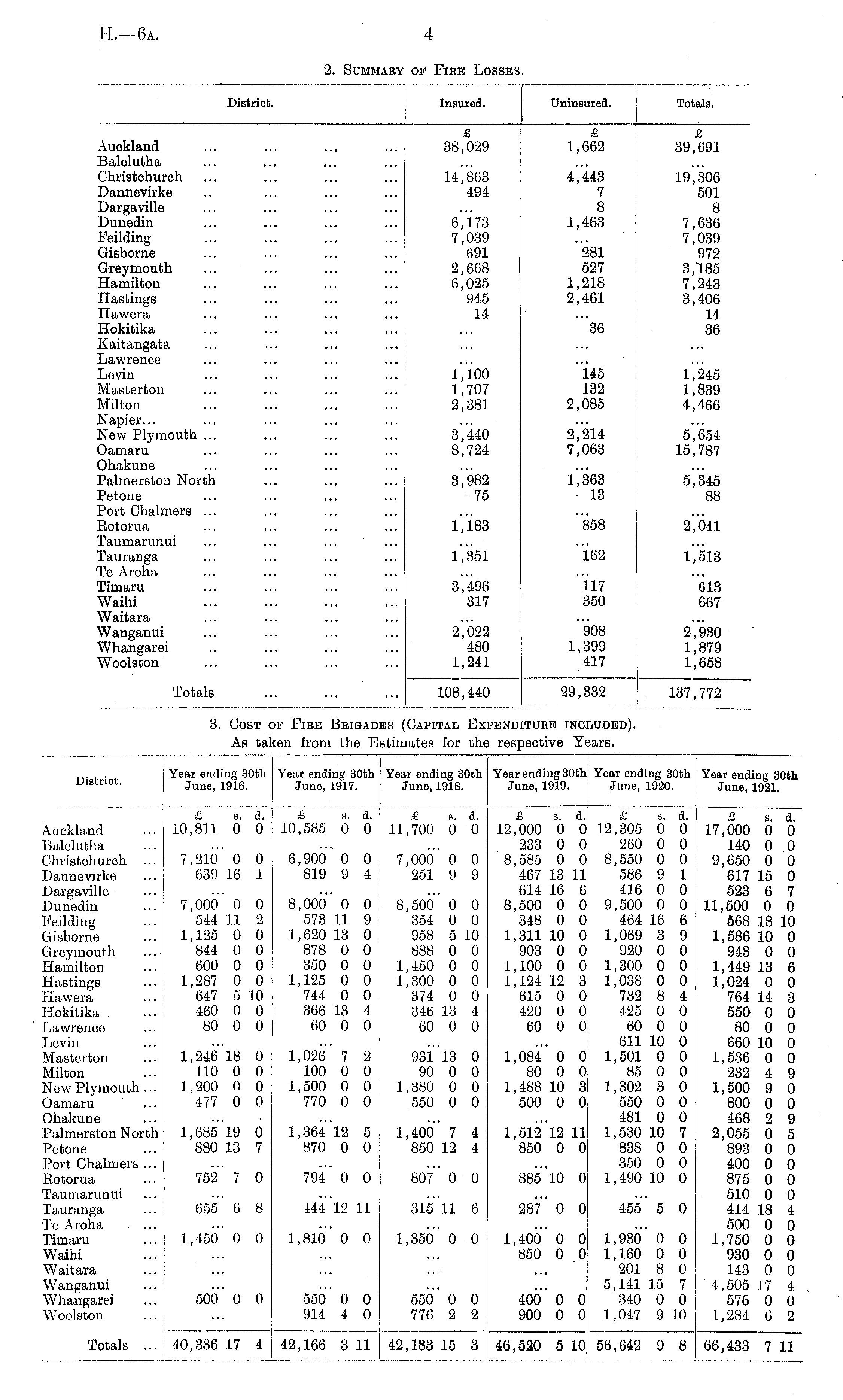 Distriot. Year ending 30th June, 1916. Yenr ending 30th Juno, 1917. Year ending 30th June, 1918. Year ending 30th June, 1919. Year ending 30th June, 1920. Year ending 30th June, 1921. £ s. d. 10,811 0 0 £ B. d. 10,585 0 0 £ b. a. 11,700 0 0 I " £ s. d. 12,000 0 0 233 0 0 8,585 0 0 467 13 11 614 16 6 8,500 0 0 348 0 0 1,311 10 0 903 0 0 1,100 0 0 1,124 12 8 615 0 0 420 0 0 60 0 0 £ b. d. 12,305 0 0 260 0 0 8,550 0 0 586 9 1 416 0 0 9.500 0 0 464 16 6 1,069 3 9 920 0 0 1,300 0 0 1,038 0 0 732 8 4 425 0 0 60 0 0 611 10 0 1.501 0 0 85 0 0 1,302 3 0 550 0 0 481 0 0 1,530 10 7 838 0 0 350 0 0 1,490 10 0 £ s. d. 17,000 0 0 140 0 0 9,650 0 0 617 15 0 523 6 7 11,500 0 0 568 18 10 1,586 10 0 943 0 0 1,449 13 6 1,024 0 0 764 14 3 550 0 0 80 0 0 660 10 0 1,536 0 0 232 4 9 1,500 9 0 800 0 0 468 2 9 2,055 0 5 893 0 0 400 0 0 875 0 0 510 0 0 414 18 4 500 0 0 1,750 0 0 930 0 0 143 0 0 4,505 17 4 576 0 0 1,284 6 2 Auckland Balclutha Ohristchurch ... Dannevirke Dargaville Dunedin l^eilding Gisborne G reymouth Hamilton Hastings 1 lawera Hokitika 7,210 0 0 639 16 1 7,000 0 0 544 11 2 1,125 0 0 844 0 0 600 0 0 1,287 0 0 647 5 10 460 0 0 80 0 0 6,9Oo" 0 0 819 9 4 8,000 0 0 573 11 9 1,620 13 0 878 0 0 350 0 0 1,125 0 0 744 0 0 366 13 4 60 0 0 7,000 0 0 251 9 9 8,500 0 0 354 0 0 958 5 10 888 0 0 1,450 0 0 1,300 0 0 374 0 0 346 13 4 60 0 0 Lawrence Levin Masterton Milton New Plymouth ... Oamaru Ohakune Palmerston North Petone Port Chalmers ... Botorua 1,246 18 0 110 0 0 1,200 0 0 477 0 0 1,026 7 2 100 0 0 1,500 0 0 770 0 0 931 18 0 90 0 0 1,380 0 0 550 0 0 1,084 0 0 80 0 0 1,488 10 3 500 0 0 1,685 19 0 880 13 7 1,364*12 5 870 0 0 1,400 7 4 850 12 4 1,512" 12 11 850 0 0 752 7 0 794" 0 0 807 ' 0 ' 0 885 10 0 Taumarunui 655 6 8 44412 11 315 11 6 287 0 0 455" 5 0 Tauranga Te Aroha Timaru Waihi Waitara Wanganui Whangarei Woolston 1,450" 0 0 1,810 0 0 1,350 0 0 1,400' 0 0 850 0 0 1,930 0 0 1,160 0 0 201 8 0 5,141 15 7 340 0 0 1,047 9 10 500 0 0 550' 0 0 914 4 0 550' 0 0 776 2 2 400* 0 0 900 0 0 Totals ... 40,336 17 4 42,166 3 11 42,183 15 3 46,520 5 10 56,642 9 8 66,433 7 11