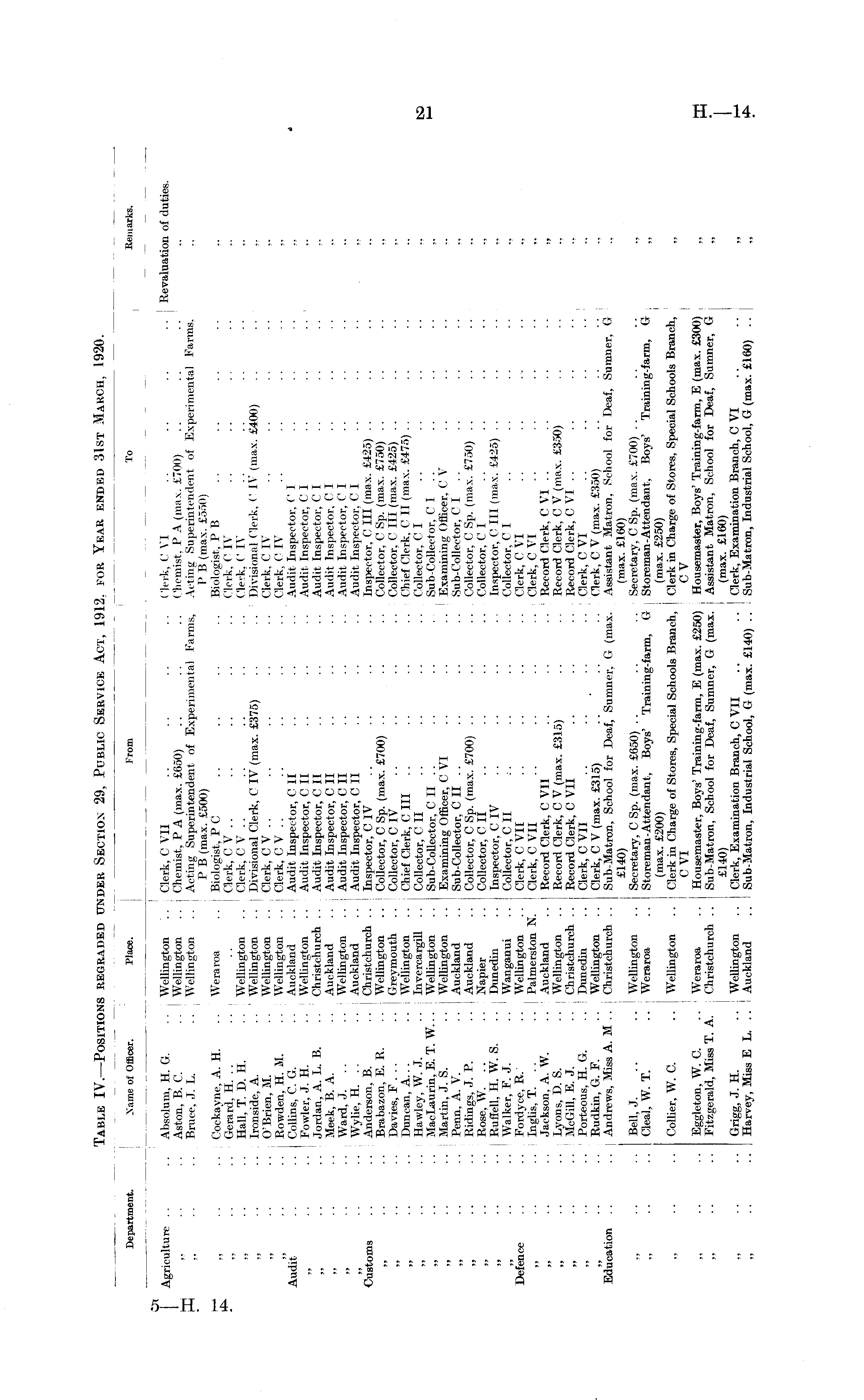 Table IV.—Positions regraded under Section 29, Public Service Act, 1912, for Year ended 31st March, 1920.