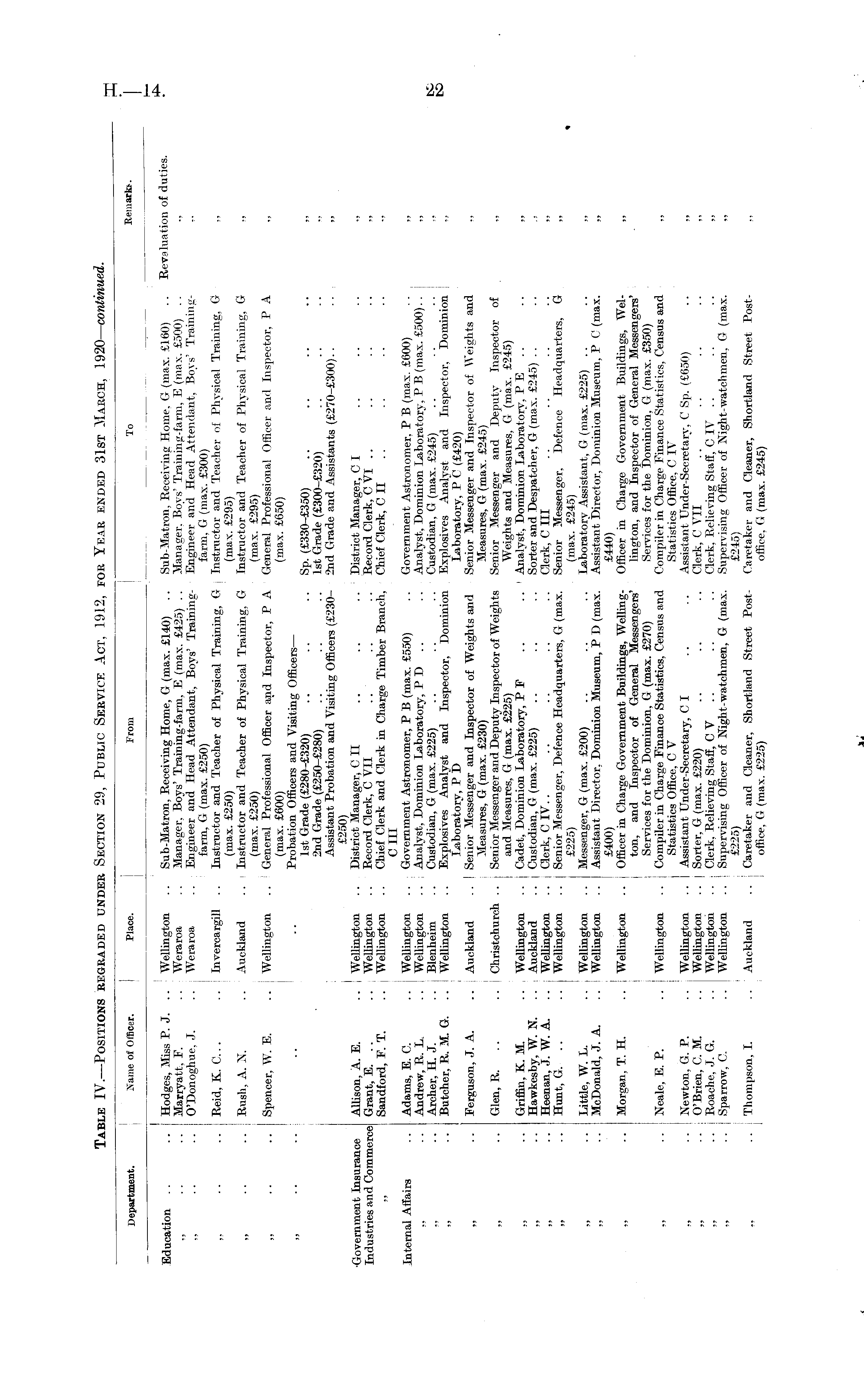 Table IV.—Positions regraded under Section 29, Public Service Act, 1912, for Year ended 31st March, 1920— continued.